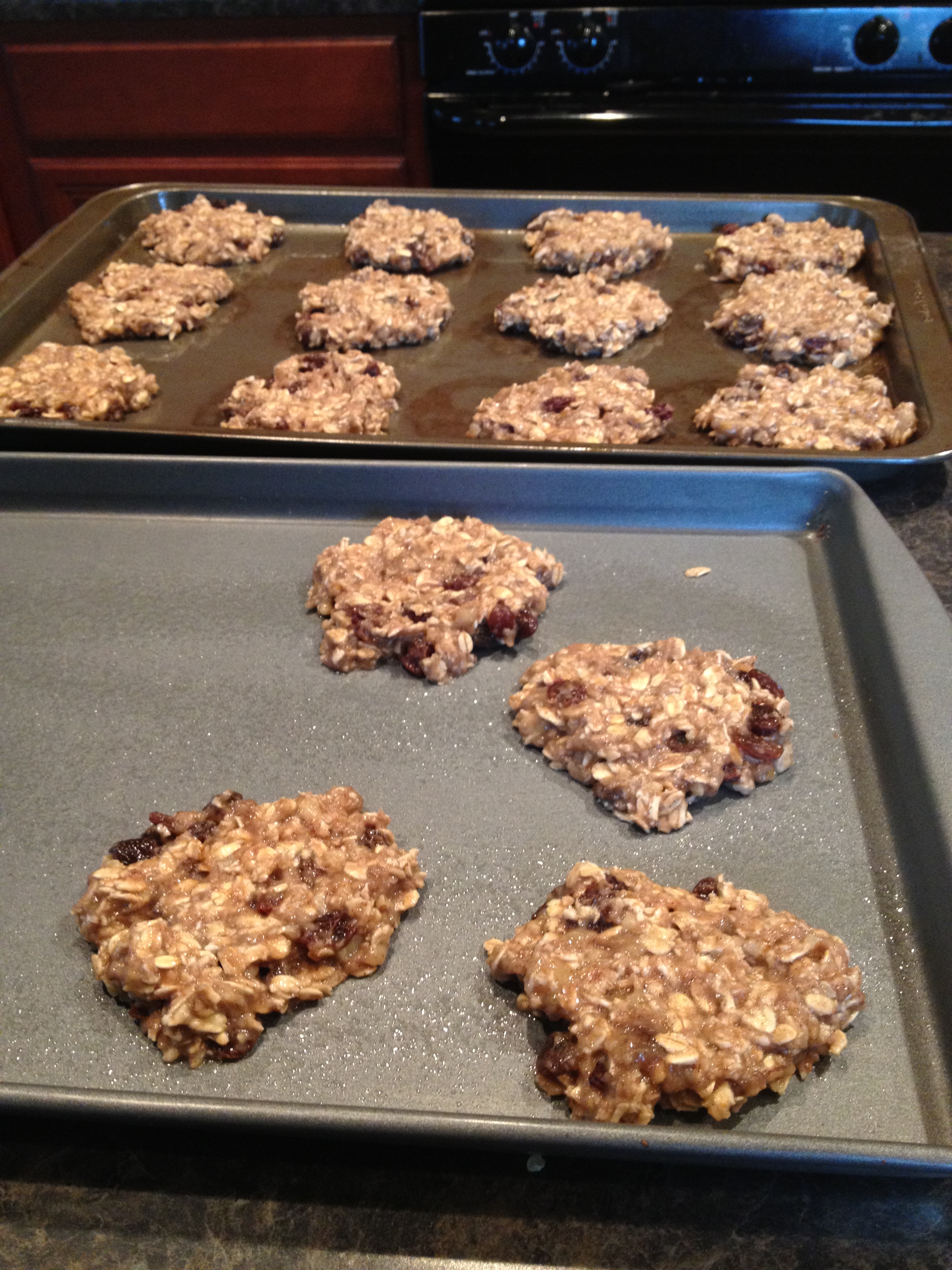 So the Breakfast Cookies from Watching What I Eat is my first baking post. Yummy! I am not really a normal breakfast eater. I don’t sit and eat before work. I am a grab and go type person. I have 8 ounces of chocolate soy milk before the gym, then coffee and a little something in the car on the way to work and fruit as a mid-morning snack. The car ride is where I need my protein and carbs to start the brain for the work day.