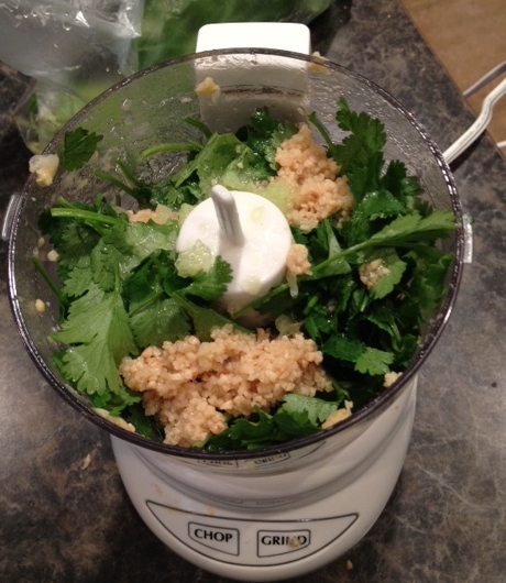 I am not a big cilantro fan, but this did have a good flavor and did taste good on my pitas. Only thing is, and I don’t know if it was because of it not being totally pulled together in the processor, it was crumbly not smooth-more paste like then creamy. Not bad or anything but obviously not right. Next time I will use my blender.