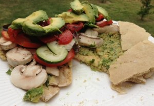 I say this was a success though because it was good. The flavors were a good combo together and I never would have thought to use cilantro instead of the normal roasted red pepper, so it was nice for a change to mix things up. And adding the requisite veggies onto my pita sandwich really made it great! I got the recipe from Vegetarian Times, where they had it in pita quesadillas-that is also where I thought up the bright idea to make my own pitas.