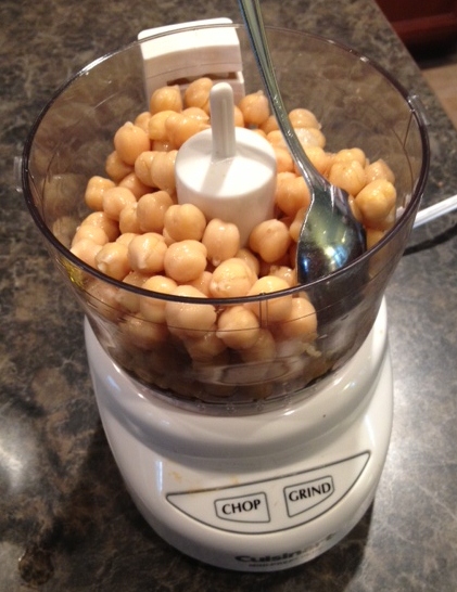 So just a heads up. This did have the potential to go wrong. I have only the Cuisinart mini food processor and it can only hold one can of beans and nothing else, so I just put that and the 2 tablespoons oil in with it. Well you try chopping beans in a mini processor and see what you smell…cause burning motor is what I got.