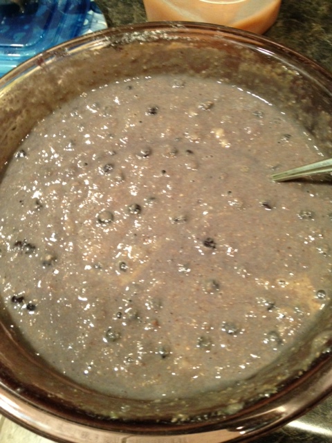 For this variation I added a bag of defrosted blueberries. It being late Fall frozen was the only way to go. I had actually meant to get cranberries, but couldn’t find any, so blueberries it was. The banana’s were also defrosted-I love freezing bananas, because how often does anyone actually get through an entire bunch of bananas, and I hate wasting.