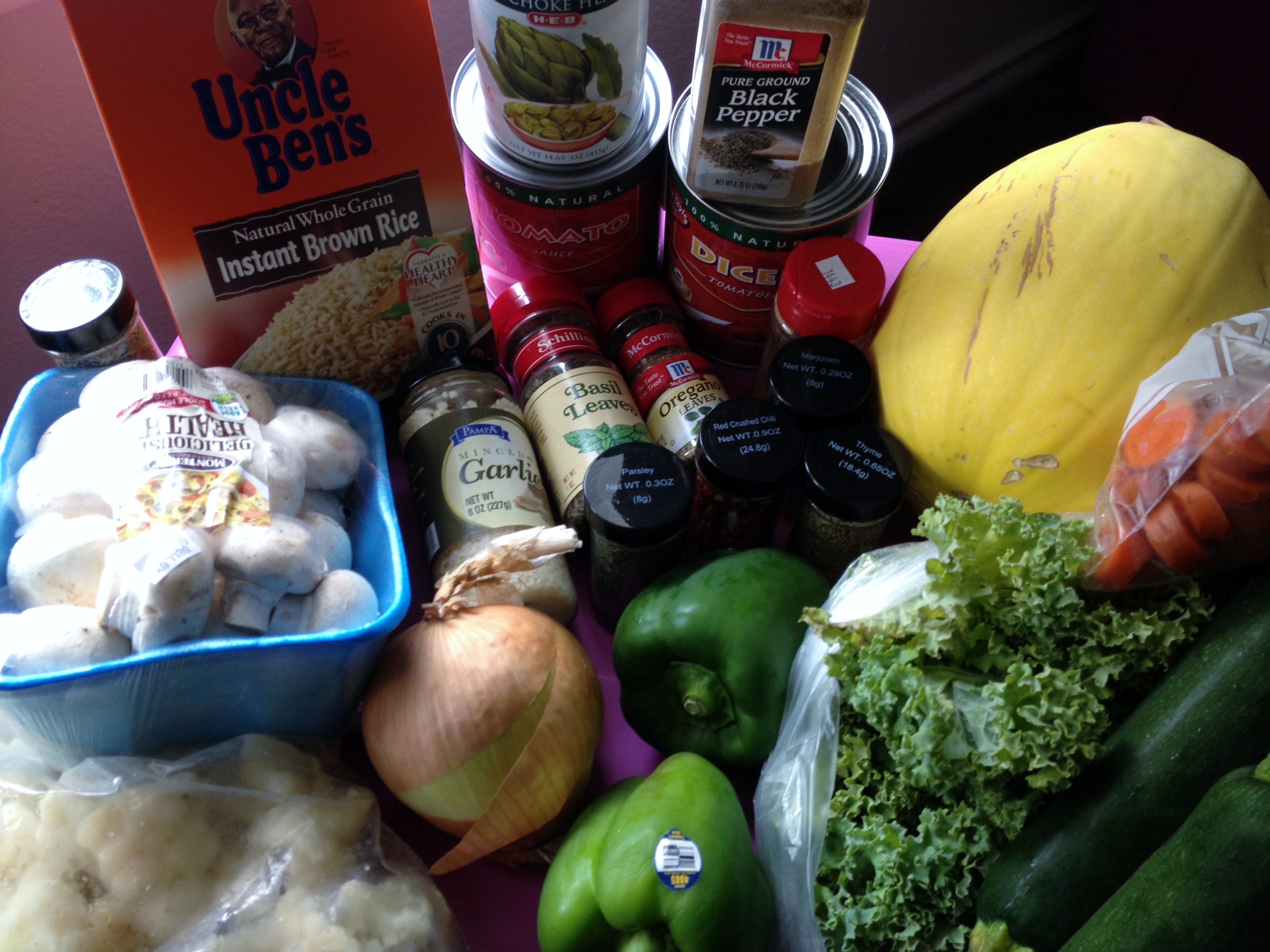 Next I just started adding veggies. I had to add the obvious-onions and green peppers and may favorite veggie ever, mushrooms. I also added some carrots which I had freezer and a head of cauliflower I had also frozen. Now this is where I think I went wrong with the slow cooker. The cauliflower which was in the freezer, I had forgotten to take it out of the freezer to defrost…and just chopped it and tossed it in the cooker and put the lid on. It just cooled it down then had to heat back up.