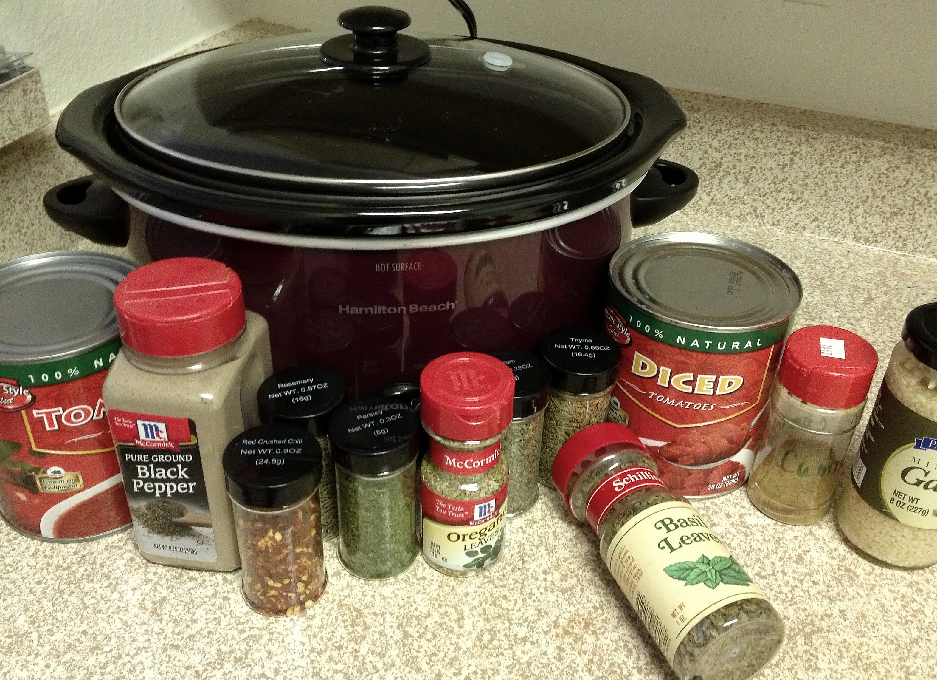 My most beloved meal ever is spaghetti-I could eat every day for the rest of my life. I love it more than stir-fry, more than french fries and more than my caramel macchiato coffee creamer. I had never made my own sauce before so this is going to be a very long post…so get ready, because there will be many parts to it. The worst part of the whole process was doing it in the crockpot took forever!