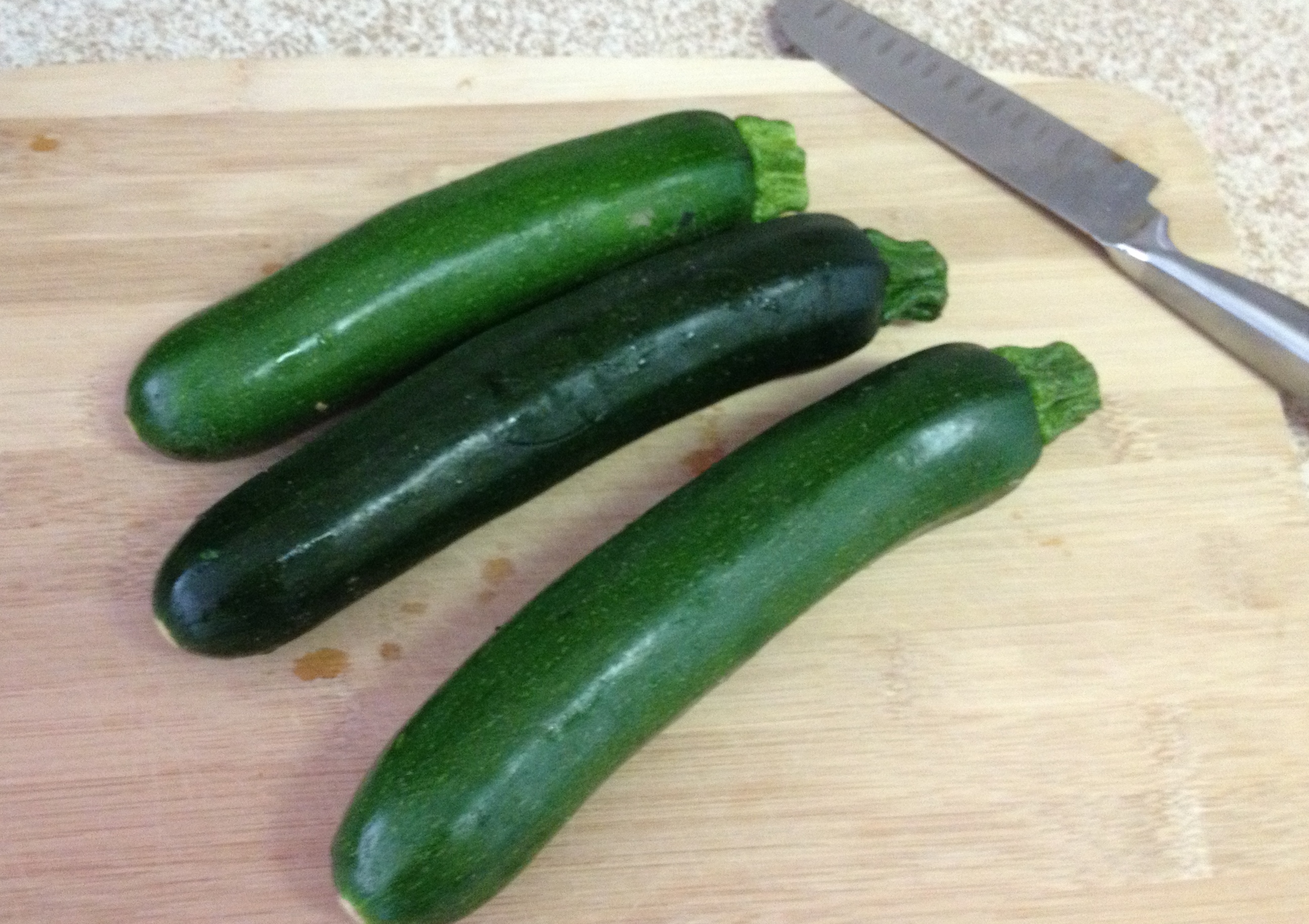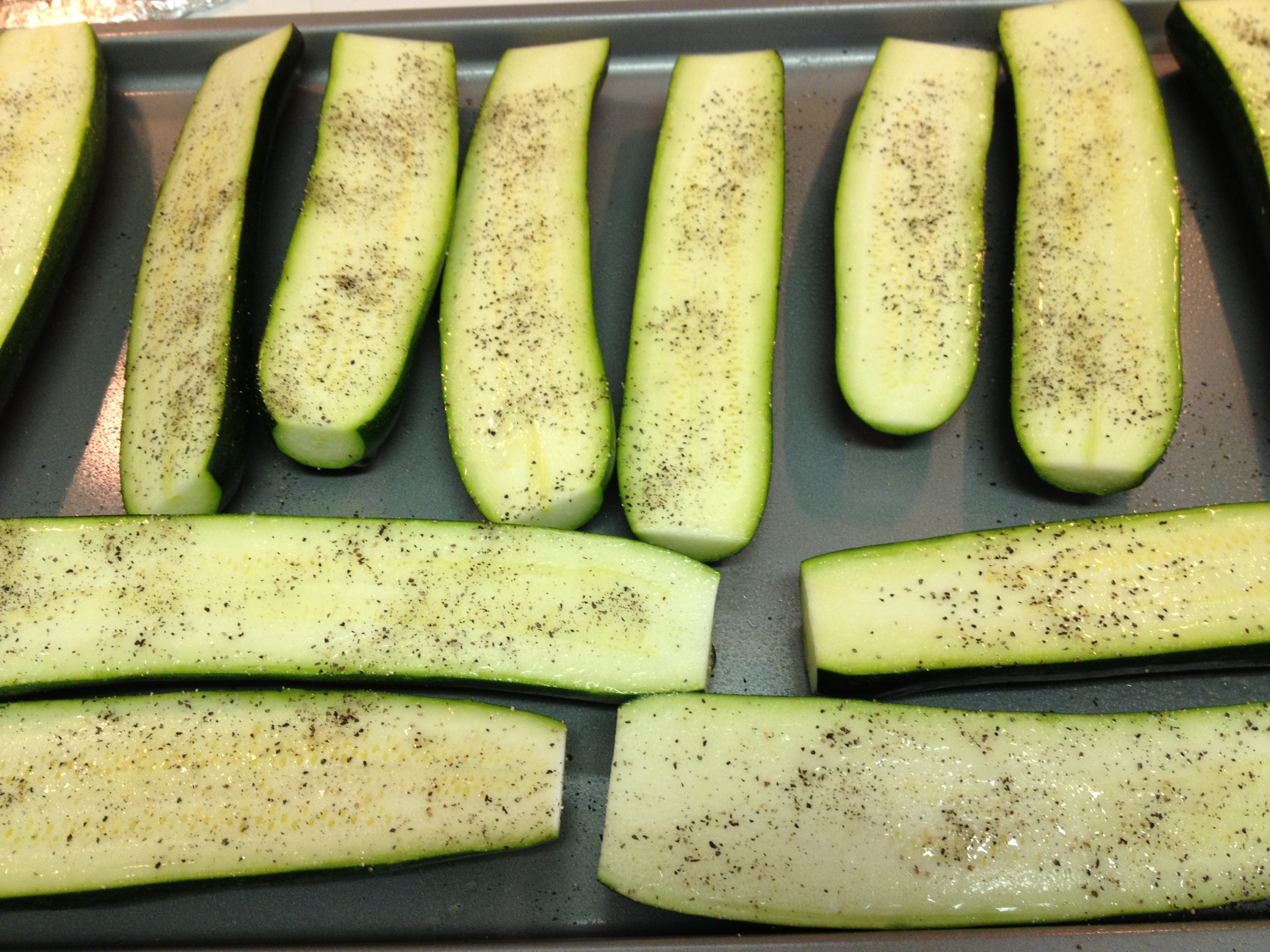 Saturdays from 8am-9am is my favorite time to workout because I get to watch Paula Deen. She is so sinful in her cooking that it isn’t like I will totally follow her recipe, but it is the ideas she has that are what I need. So two weeks ago, low and behold, she did “stuffed zucchini”! I didn’t use her recipe in mine, but while watching her make them, she cut the ends off, cut them in half and baked them before scraping out the innards. Genius! Now that I did do.