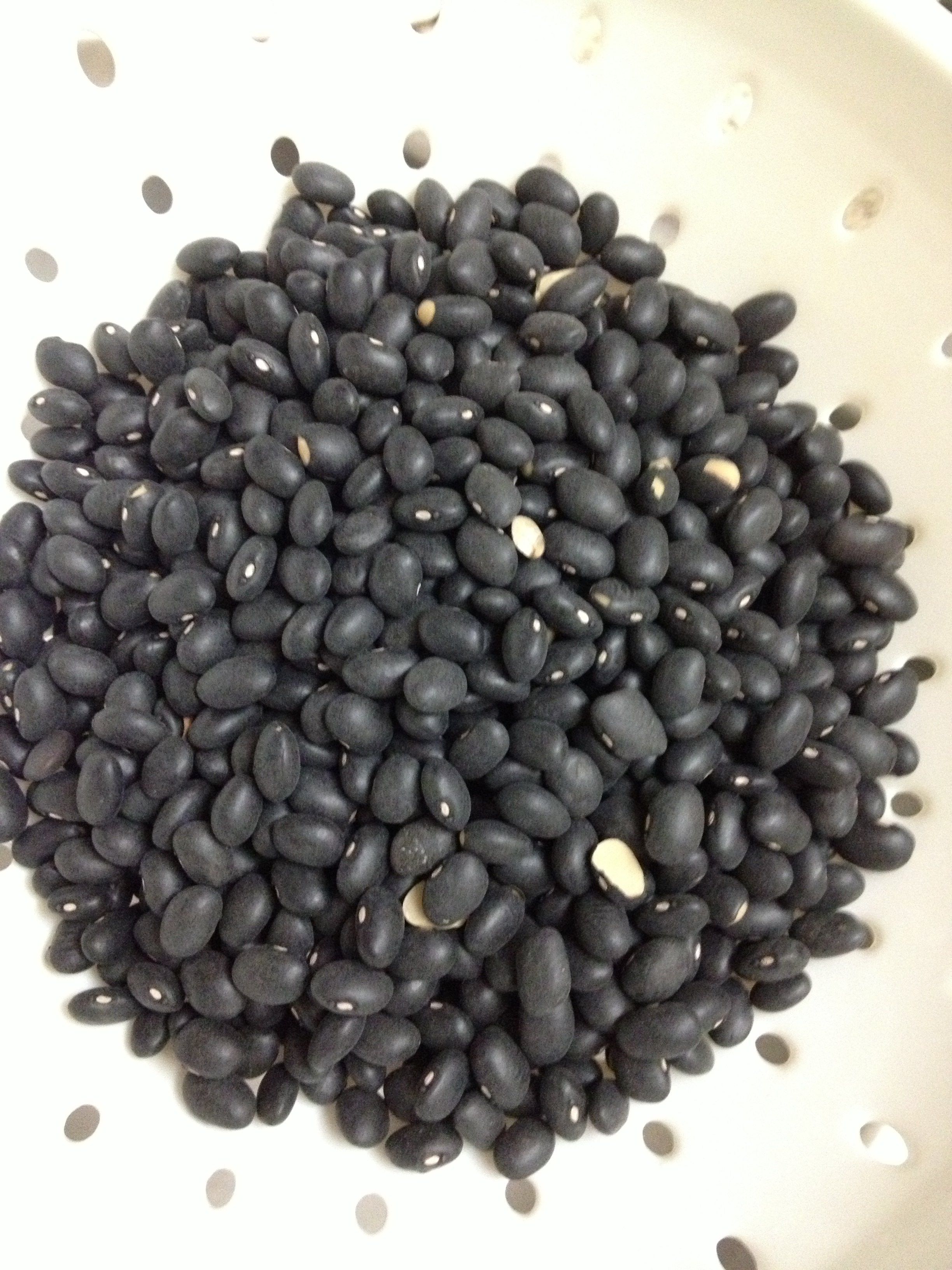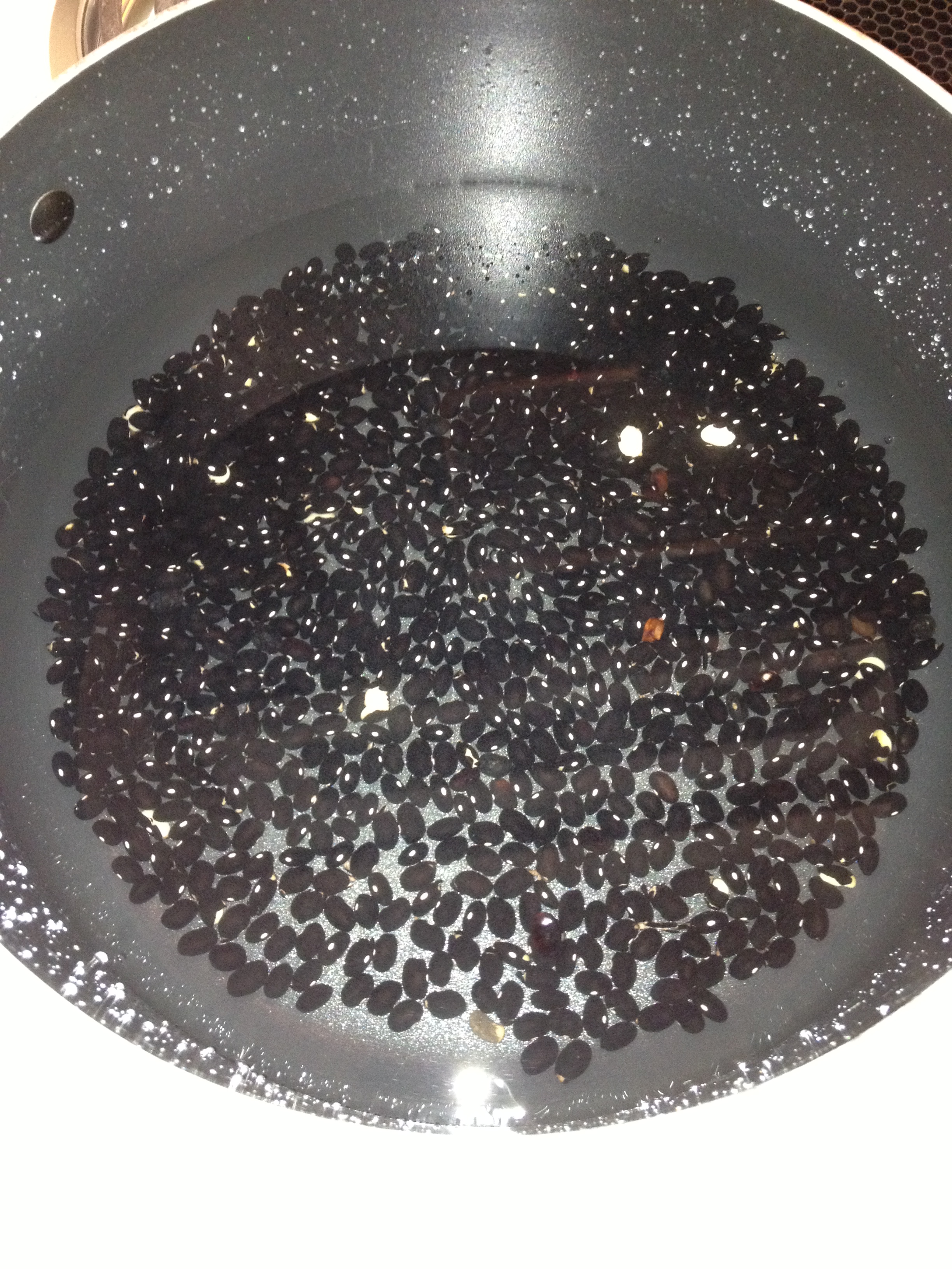 I used my biggest pot, and did the entire meal in that one pot. Just washed it after each process. I started with my dried black beans. Measured and washed one cup then poured them into the pot. Covered with water and brought to a boil, then simmered for an hour and a half. When done, I drained and rinsed the beans then washed out the pot. The water turns black, so definitely wash the pot. The last half hour of the beans I de-stemmed and de-seeded the peppers. I then added the peppers and water, brought to a boil then took off of the burner and covered for 30 minutes.