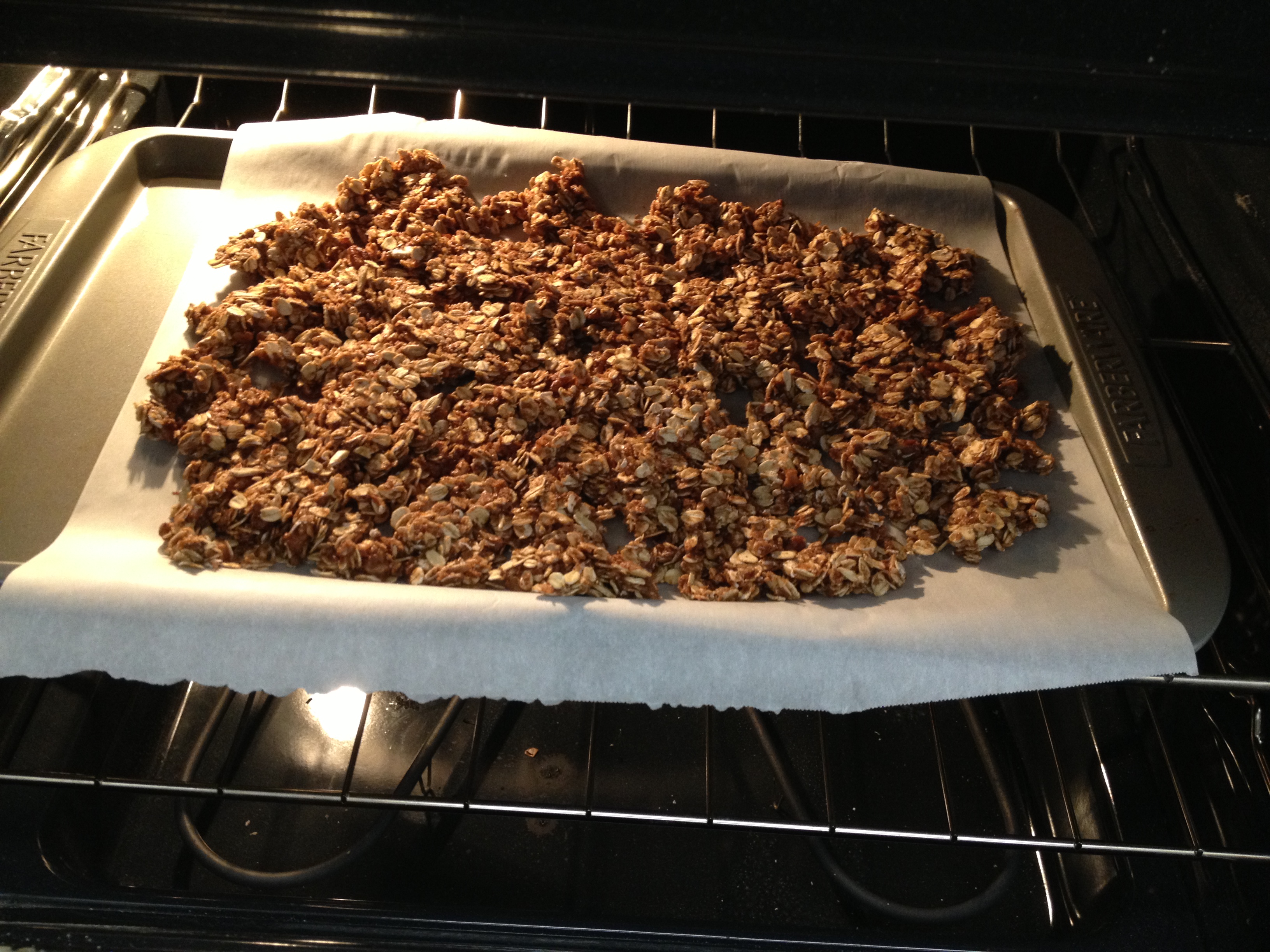 Now I know granola is in essence unhealthy; I mean can you say calorie bomb? But it is no different from a cake or cookie. . .portion control, portion control, portion control. Also, when you make it yourself, the add-ins are more easily controlled, and by not making it too sweet, it isn’t something you will scarf down.