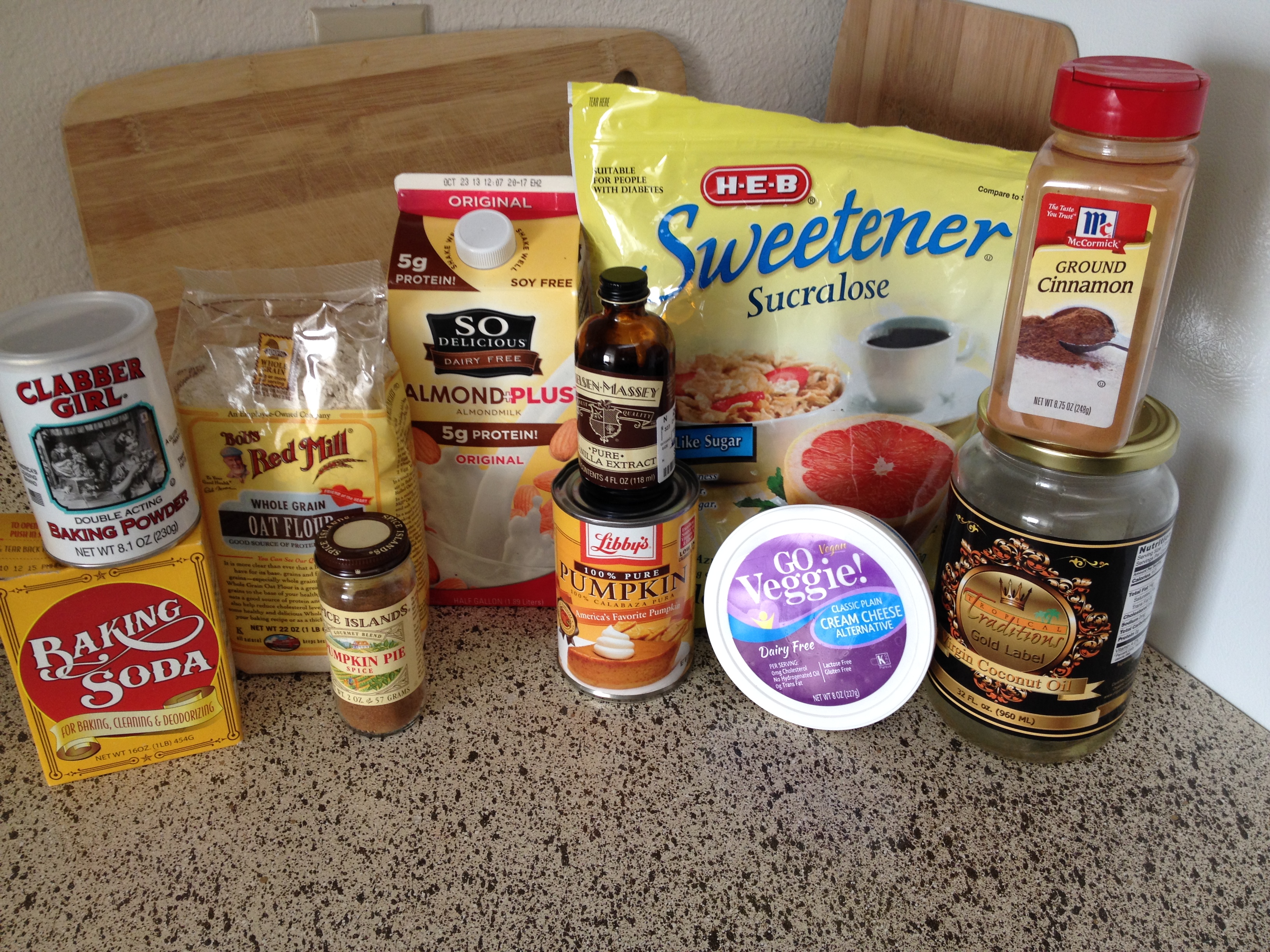 Well, I was on a mission – a mission to make these more healthy and gluten-free and not too sweet.  The healthy part and less sugar was easiest.  No eggs, a no-calorie sweetener and less oil.  The hard part was the gluten-free part.  The flour, not so hard.  Bob’s Red Mill recently had a coupon – a BOGO coupon!  Seriously, the best coupon I have had for a while so I got the oat flour.  The harder part was the cream cheese.  I was internet searching to see if vegan cream cheeses were gluten-free.  And yes they are!