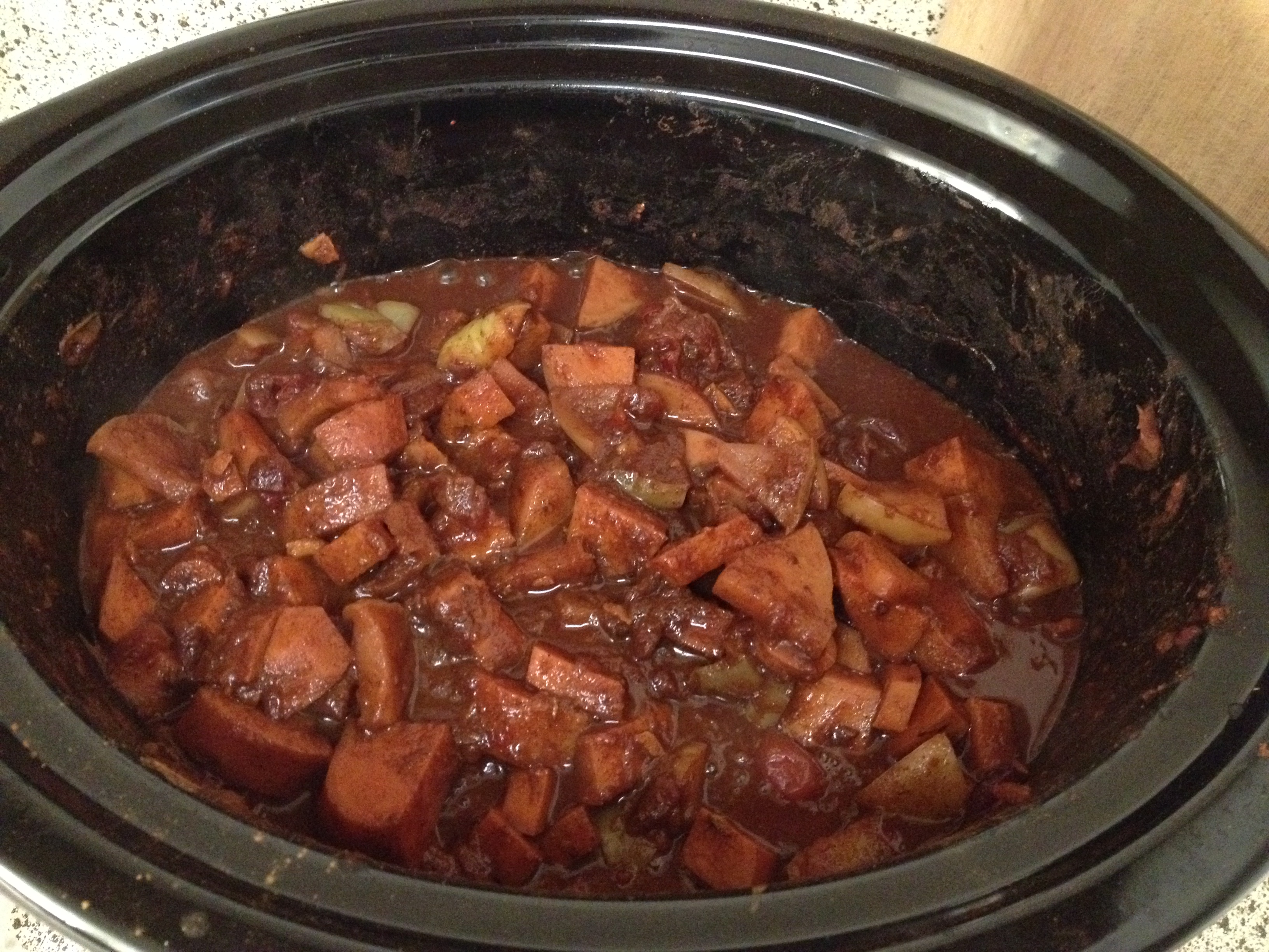 Slow Cooker Sweet Potato, Apple and Cranberry Sauce