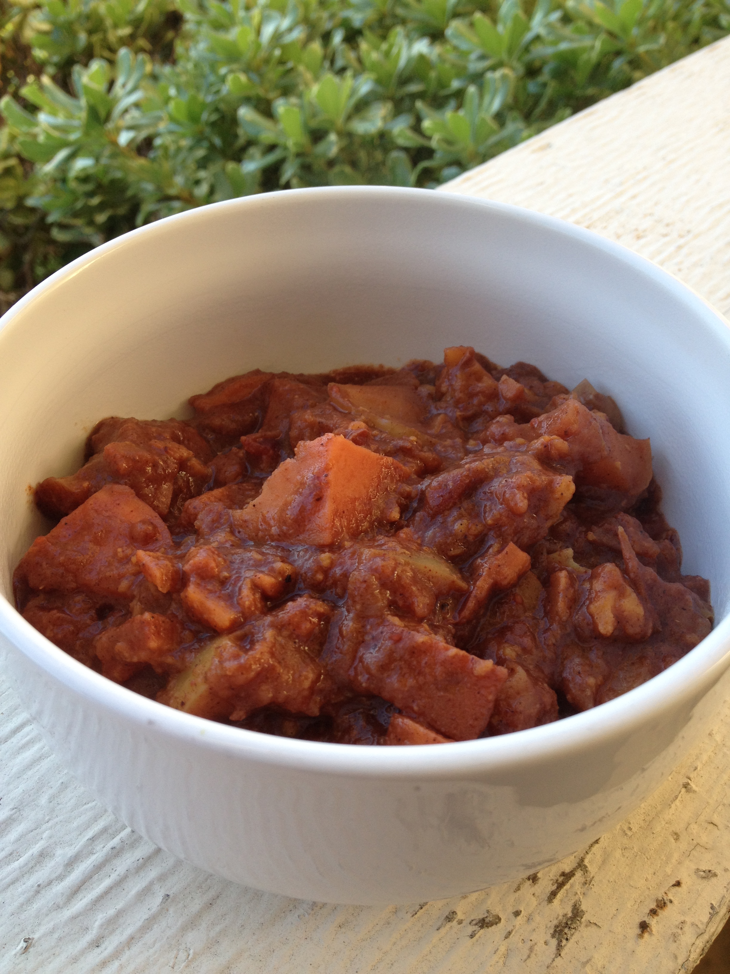 5. Chop sweet potatoes into small chunks and add to pot. Lid back on.
