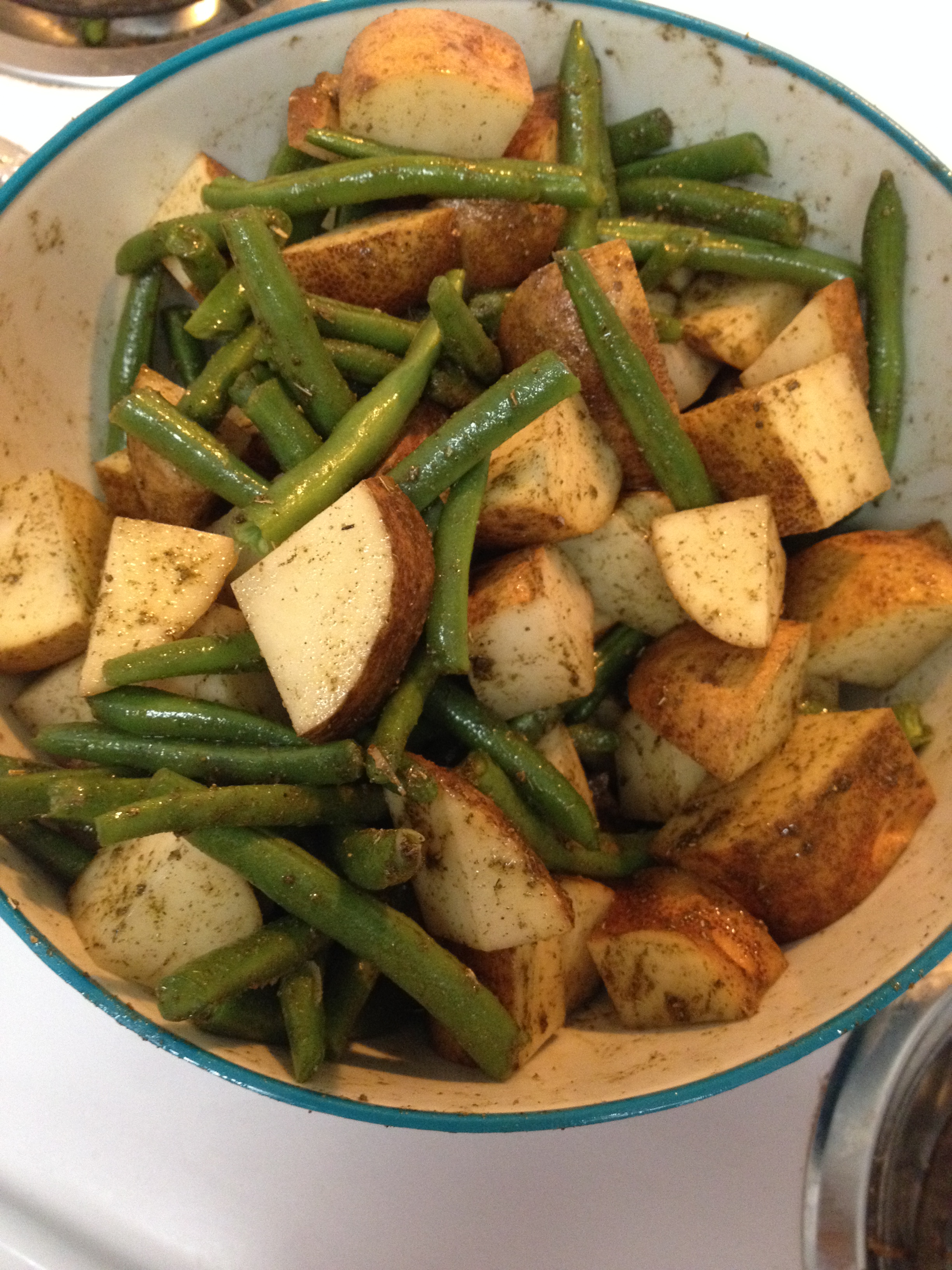 While contemplating Thanksgiving meal ideas I knew it was the sides that I needed to focus on. Since I don’t have the money right now to buy a vegan turkey meal, the sides are the limit!…pun intended 🙂 Here is a twist on potatoes and green beans. Savory Roasted Potatoes and Green Beans.