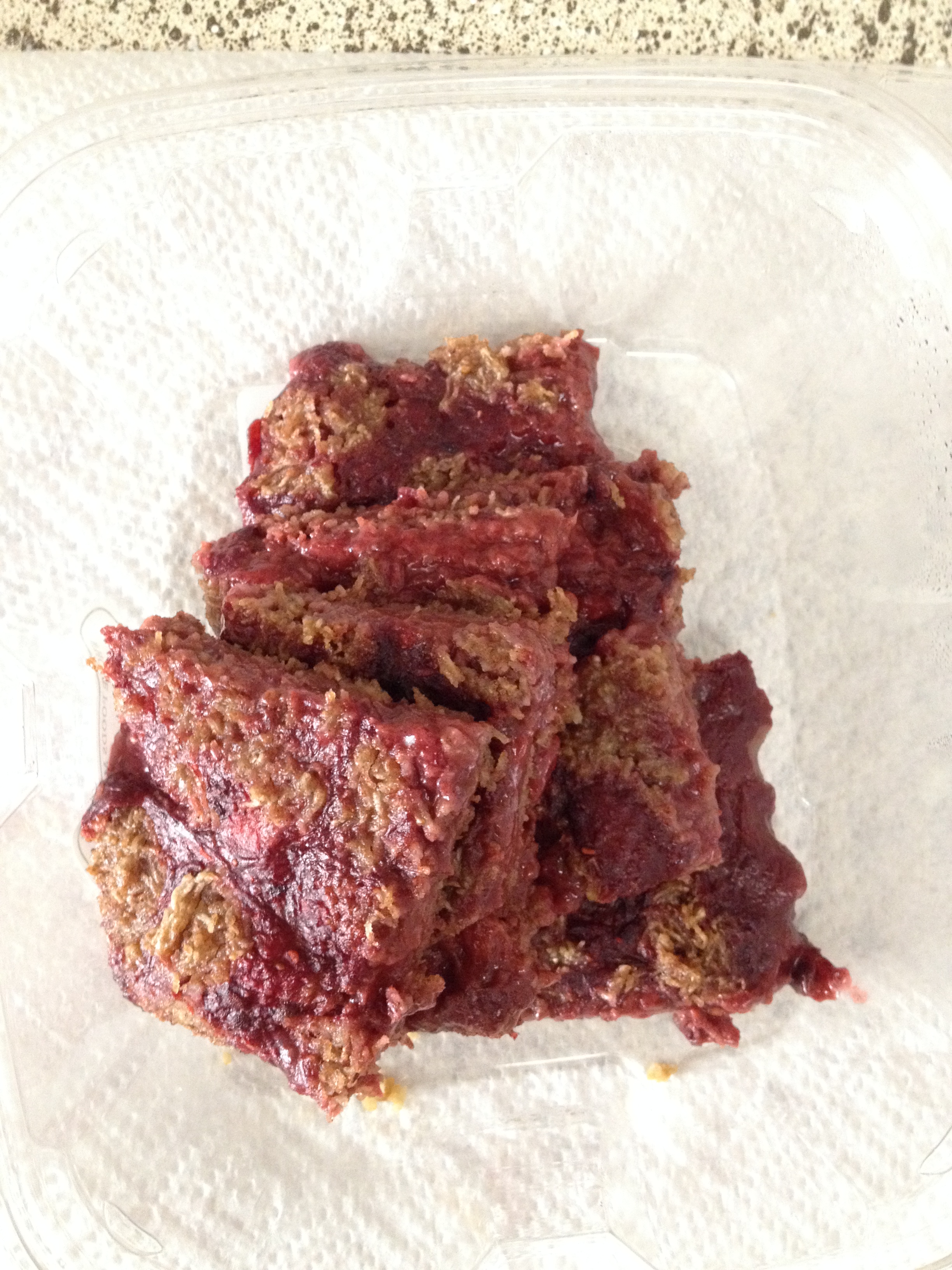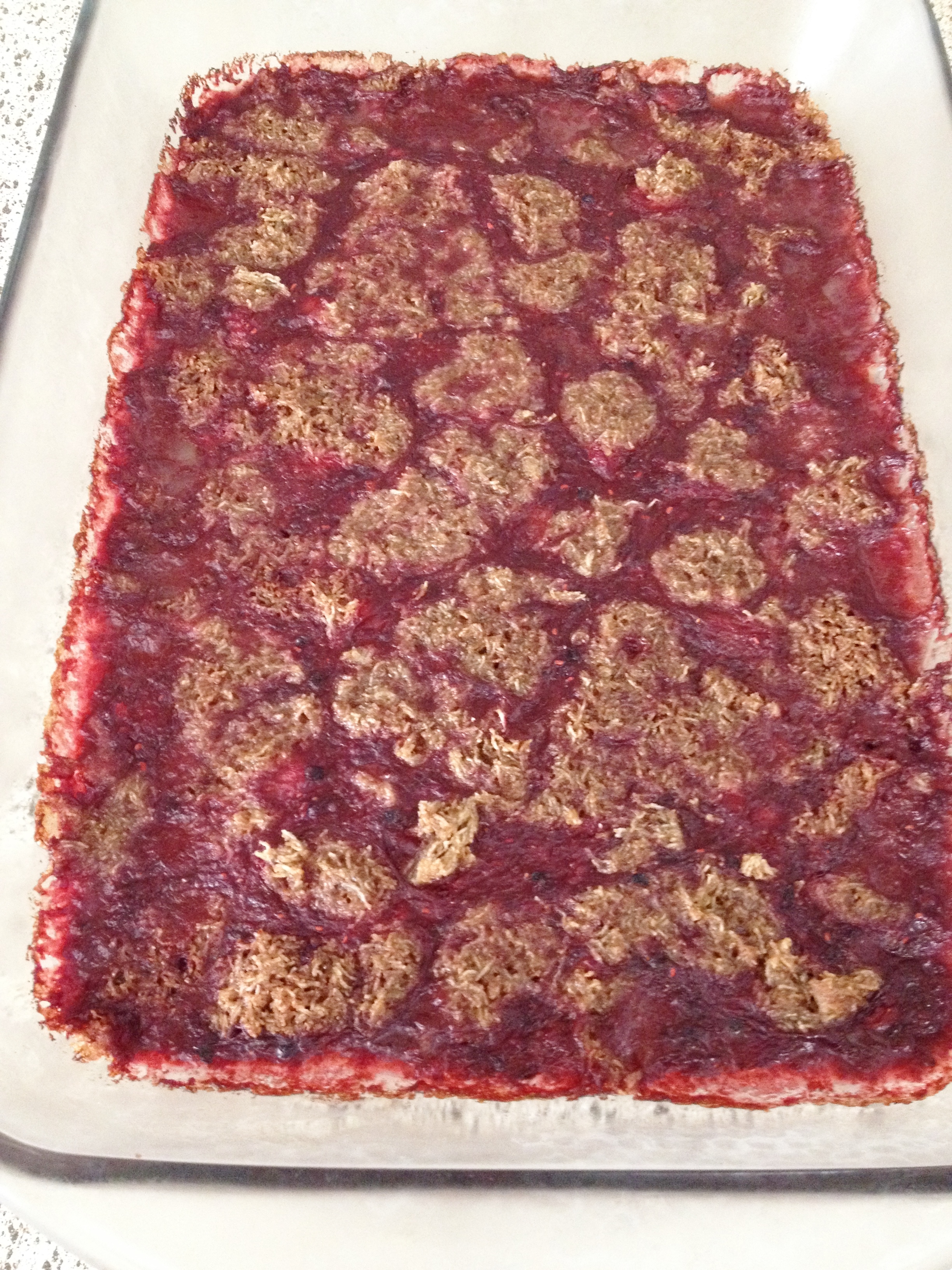 So my most favorite thing, and most expensive along the lines of bang-for-the-buck, at Whole Foods is the raspberry crumble bar. They are baked there, and you only get three bars and it costs $5…that’s expensive! But every time I go into Whole Foods I waste that money, but boy do I enjoy them! I tried to recreate them using using a ton less sugar and Vegan Kashi Island Vanilla Biscuits – here is my Refrigerator Kashi Mixed Berry Bars.