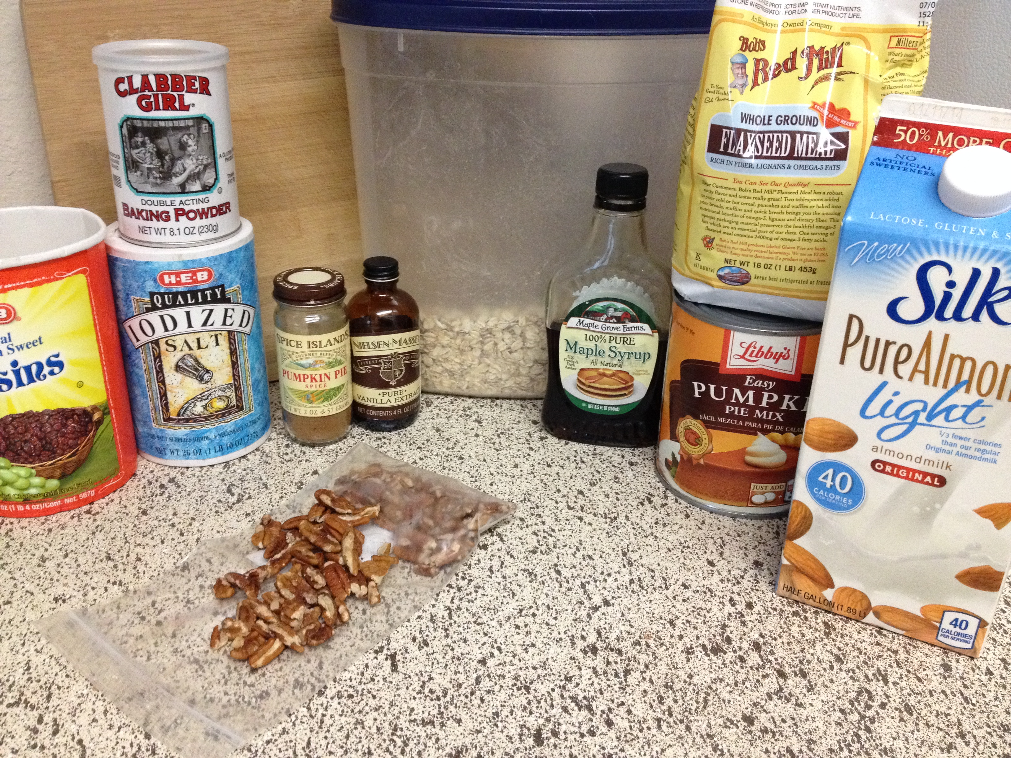 I had a huge can of Libby’s pumpkin in the cupboard and needed to put it to use. I didn’t know it was pumpkin pie filling until after I had added it to my oats. No big deal since it is spiced just right; I needed to only add a tablespoon pumpkin pie spice to these bar and only a quarter cup maple syrup. So good and filling and not overly sweet. Soft and chewy too.