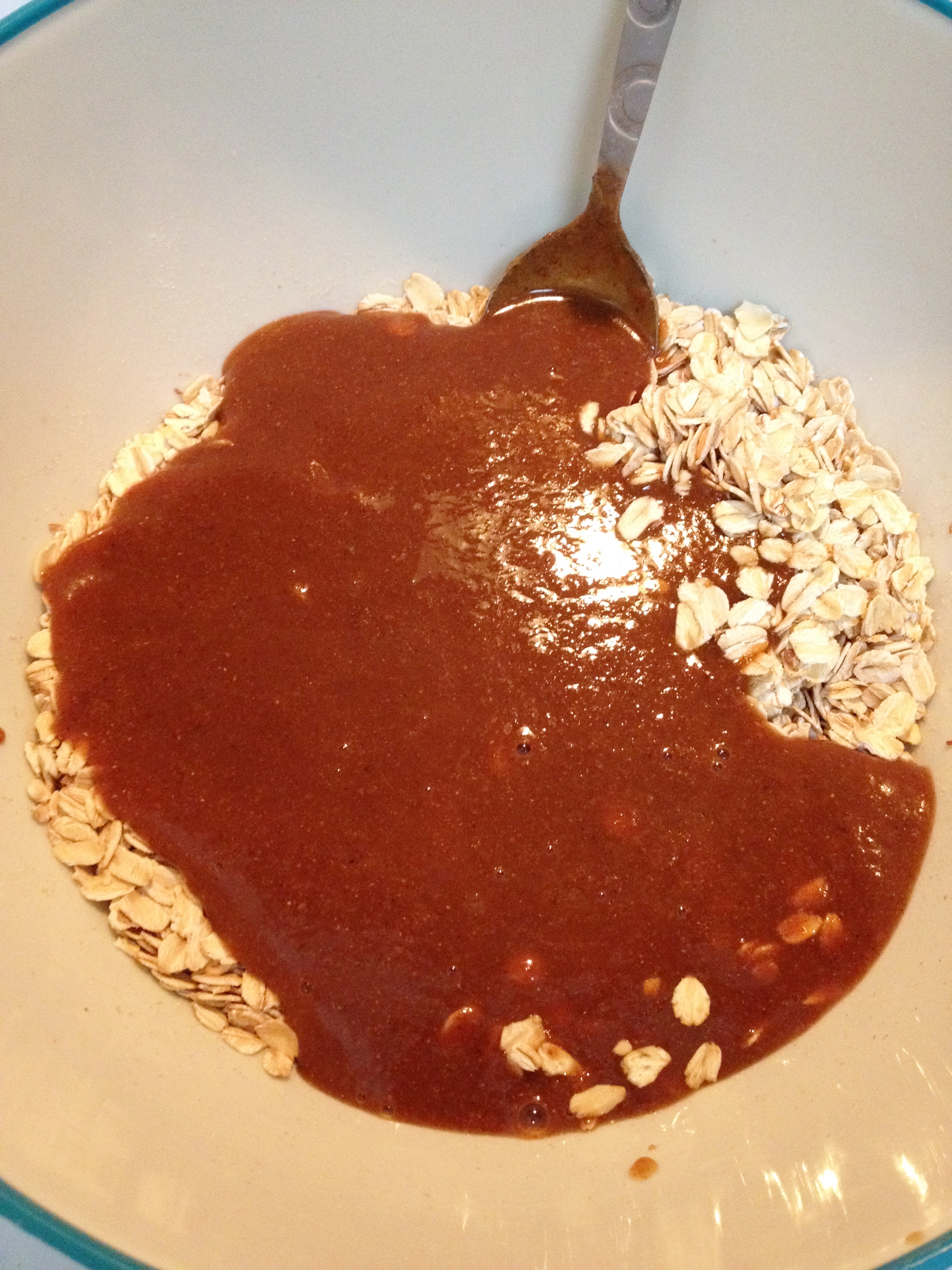 4. Pour mixture over oats and blend well.