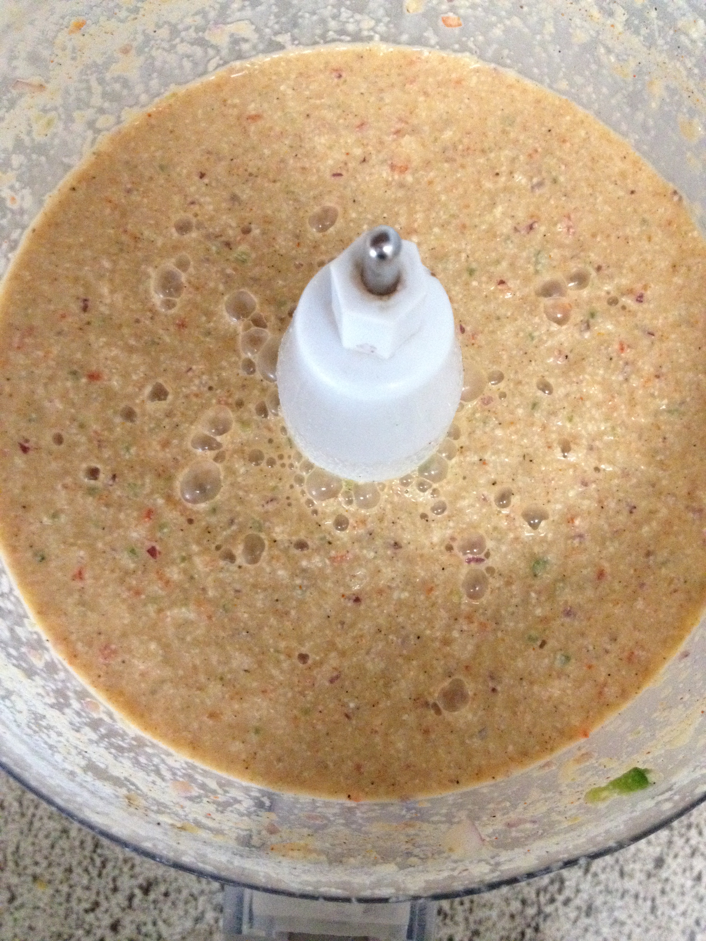 I did the first step for five minutes, but then didn’t want to waste time and just chopped the veggies and tossed everything (veggies and rest of ingredients) into the food processor. I let it rip for about five minutes. Then I put it in a pot, but only boiled for like fiveish minutes. It was runny, but still tasted awesome. One thing for sure though, is at whoo! is it spicy! Yum. Also, this recipe made a ton, so I will be adding it to more stuff in the future. Love that!