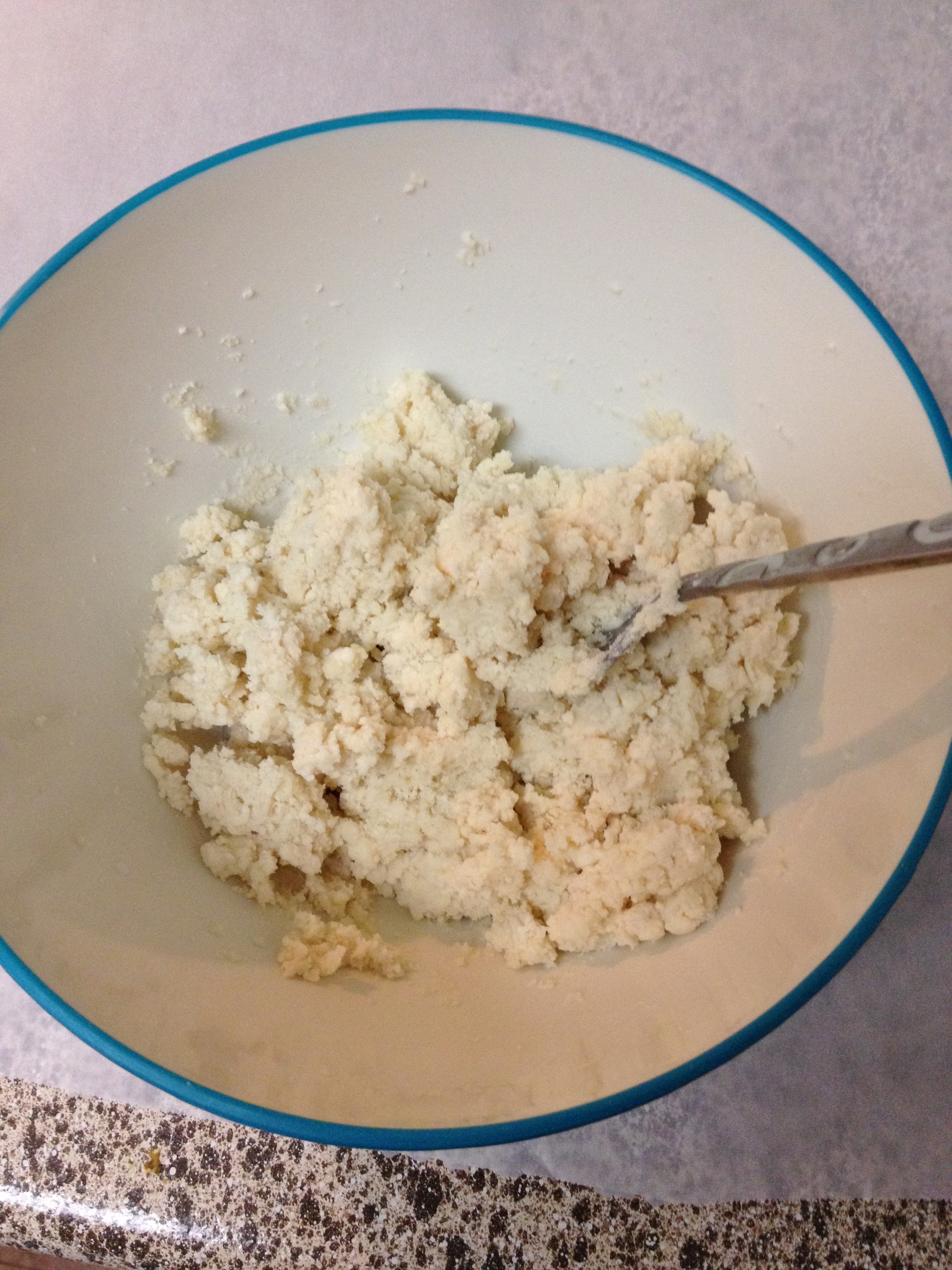 Pour the water onto dry mix and blend well with a fork. Lay out parchment paper on the counter and sprinkle with flour and spray muffin tins with non-stick spray. Pour batter onto parchment paper and using a floured rolling pin roll out flat and thin. Keep tossing flour on dough. I didn’t get as much dough as I thought I would, but using a knife I cut out rounds and pressed into each tin. Just eyeball it, no need to be perfect. Ball up extras and roll back out and cut out more rounds. Use the little extra bits by rolling out hearts or cutting strips for the tops. Bake at 450 degrees for 20ish minutes. Let cool slightly then use a knife to wiggle out the mini’s.