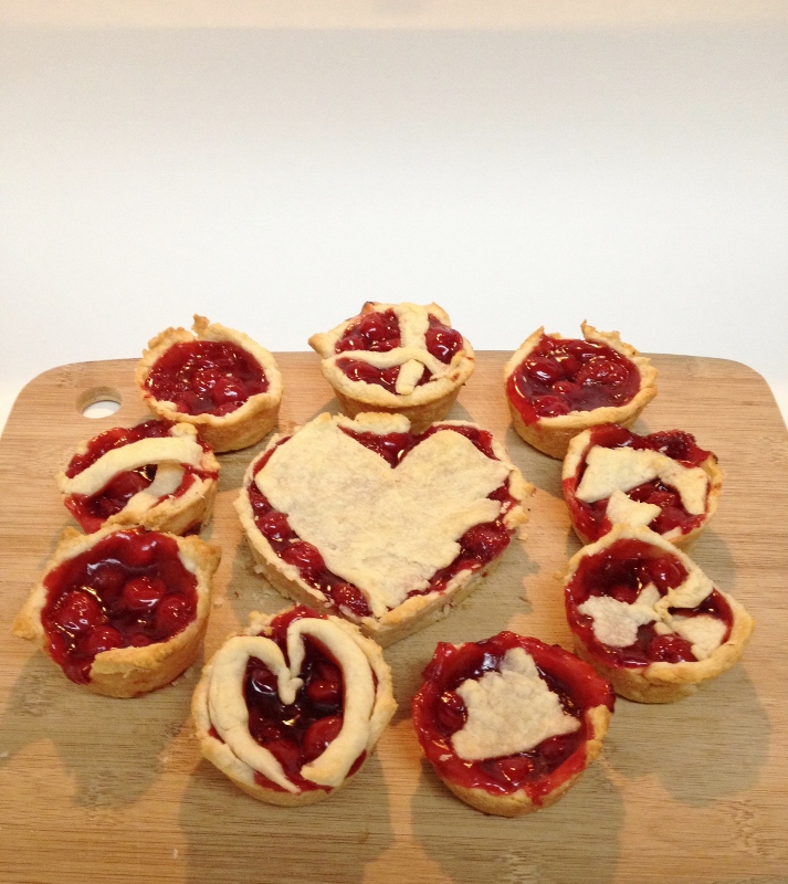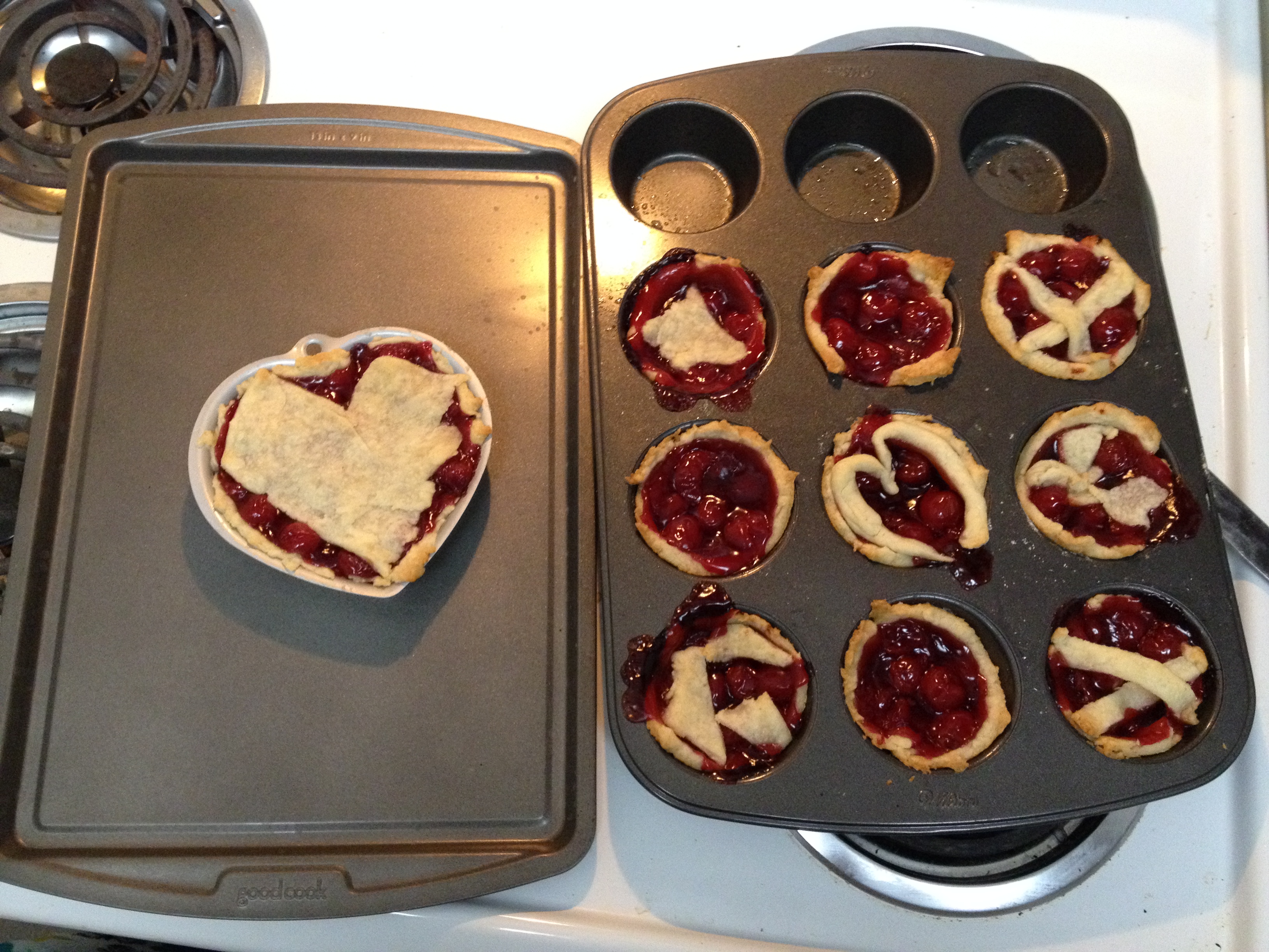 So the big intention of these min- pies is for my coworker, it is her birthday a few days before V Day and I always bake for my coworkers. Luckily there are not many people in my office. The other was that I am doing very well with my eating, but I wanted to give myself permission to enjoy the first sweet holiday of the year. These little pies are not by any means healthy or even a little bit good for you, and may not even be vegan. But by making these and taking them to work, I am not allowing myself to gorge on them, but enjoy one mini-pie and being okay with that!