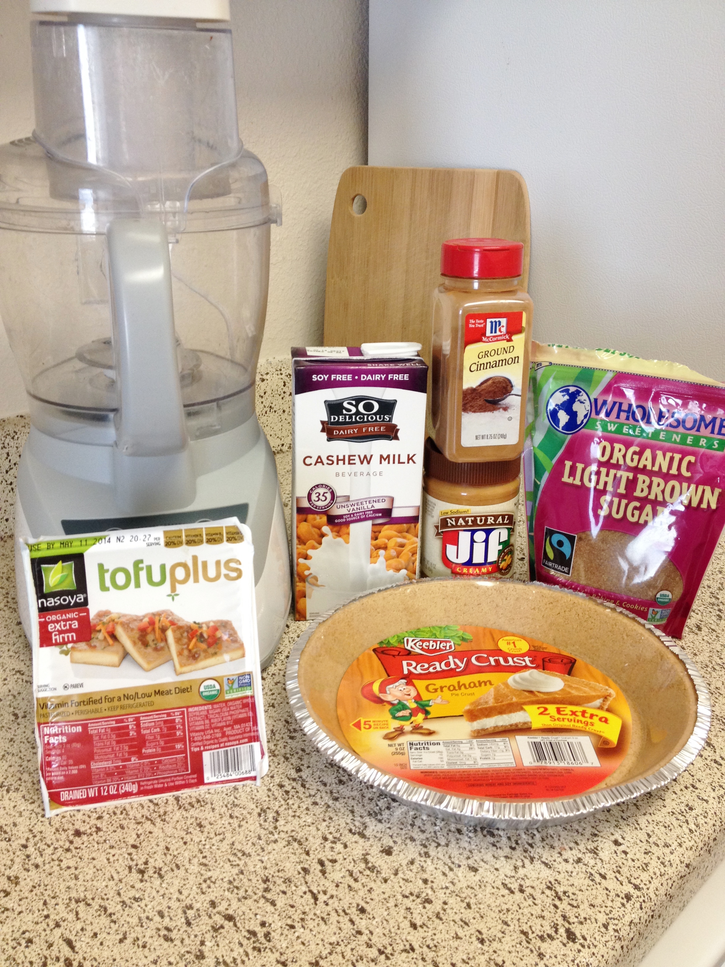One of the most tragic things ever is that I have not made anything non-savory with tofu. Why? Because it intimidates me to make something that I could possibly not like. And eating sweetened tofu kind of makes me wonder if I could like it. I mean I love tofu more than almost any meat substitute out there on the market right now, so putting that into a sweetened treat makes me wanna gag. So how does someone try something new and make it tasty enough to want to serve to the world (or just me, myself, and I)? Put peanut butter in it. And cinnamon. Anything is better with peanut butter and cinnamon right? And the crust? Keebler graham crust. Yummmmmm.