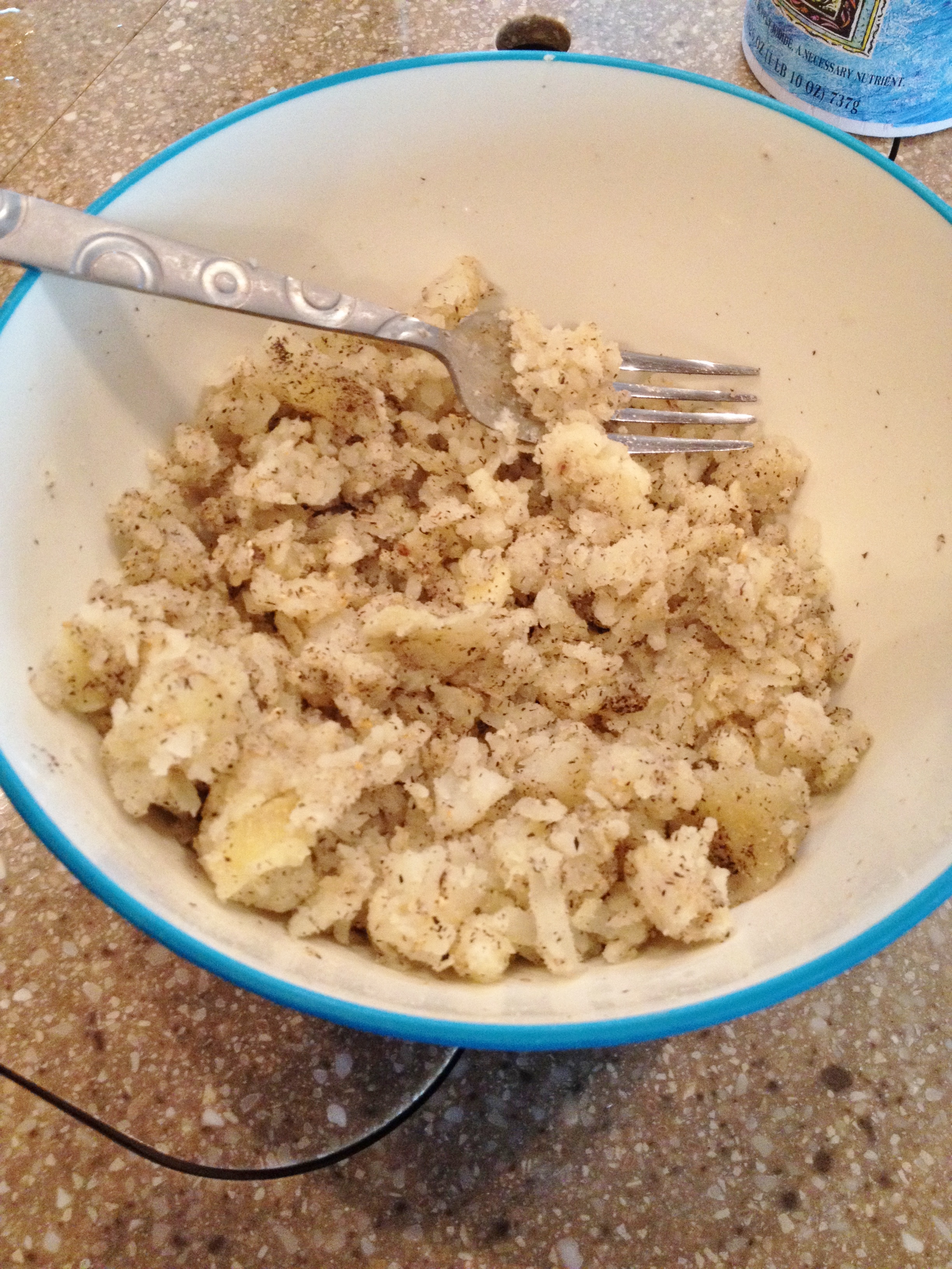 1. Wash and poke potatoes with fork. Microwave until just soft – about 5 minutes.
