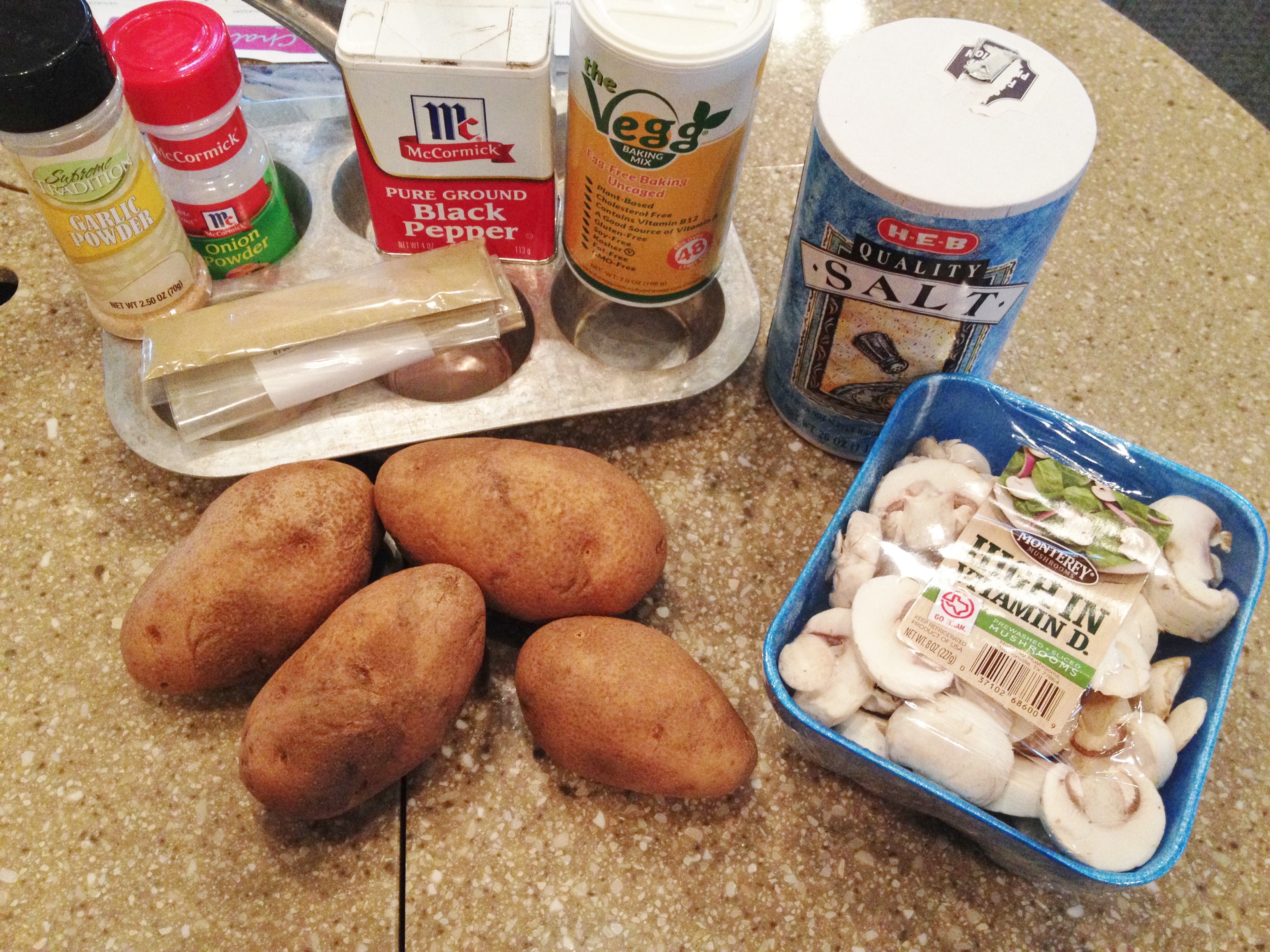These are only slightly labor intensive if you don’t have already-shredded potatoes. I microwaved four small potatoes (wash and poke with fork so they don’t explode) and then let them cool. When they were cool enough to handle I peeled then shredded the potatoes with a cheese grater. After grading add your spices and mix really good. I sprayed a muffin tin really well with non-stick spray then used my fingers to press the shreds into the tin. Bake at 400 for 15 minutes. While those are baking make the eggy mixture and chop your mushrooms. Once the potatoes are done carefully take out and spoon in a few mushrooms. Carefully pour in the egg using a spoon – once poured use the spoon to move the mushrooms a little to get the mixture down in the hole. Sprinkle a little garlic powder, salt, and pepper over the eggs. Bake for another 15 minutes. The eggs will bake down, but you will have a little runny egg left – don’t worry, it’s awesome. Like a little sunny-side up egg in a potato nest. Yum.