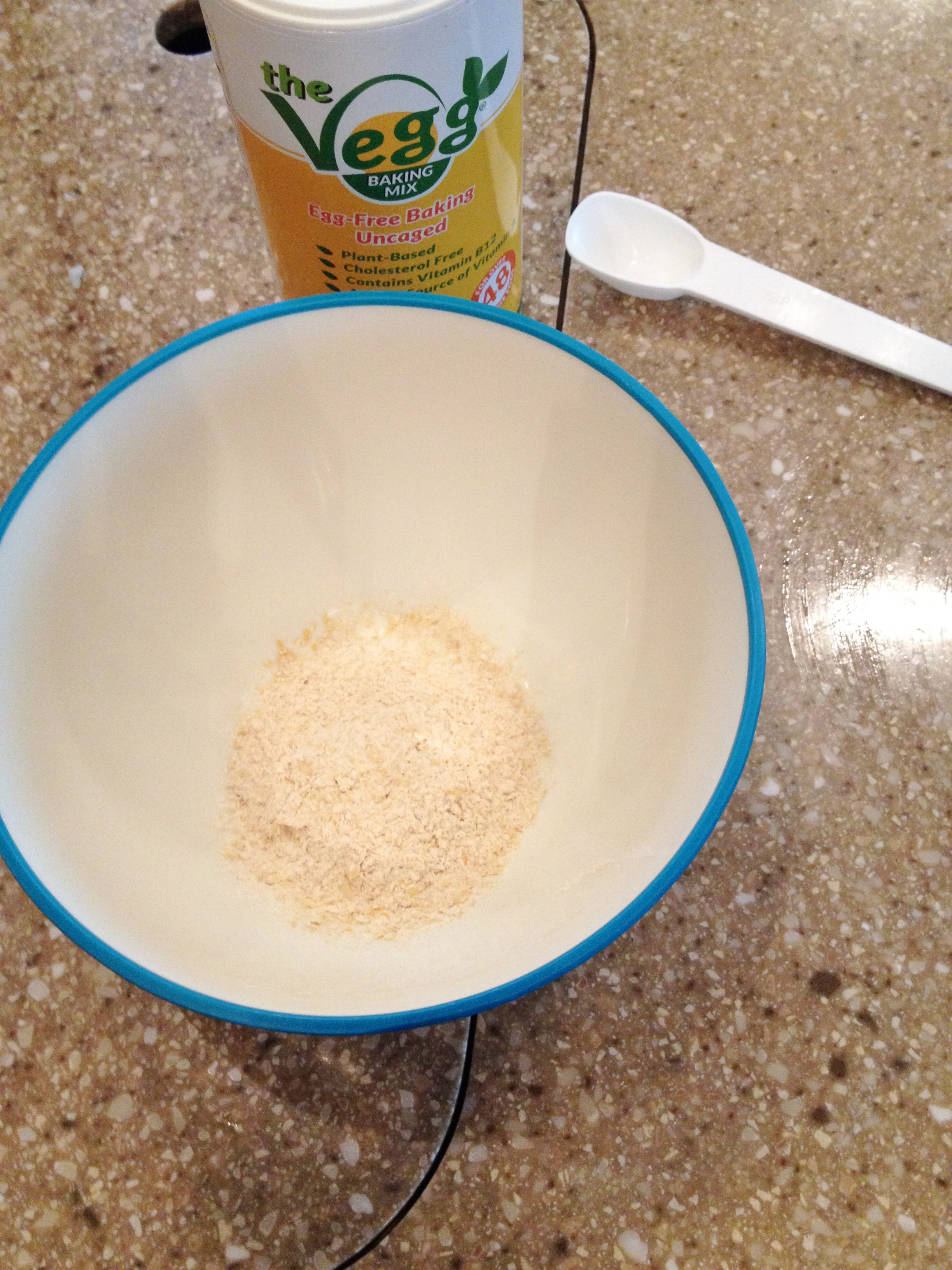 The Vegg Baking Mix is an egg-like replacer that is free of everything you can think off. Gluten? Yes. Soy? Yes. Fat? Yes. Cholesterol? Yes. What’s it for? To be used as an egg replacer in baked goods of course. Instead of always trying to find a good replacement that will help fluff up your baking, this product is to be used instead. How to use it? Just a liquid and The Vegg. Simple. And completely shocking in that once the liquid is added, it immediately thickens up to an eggy like consistency and smells like eggs!
