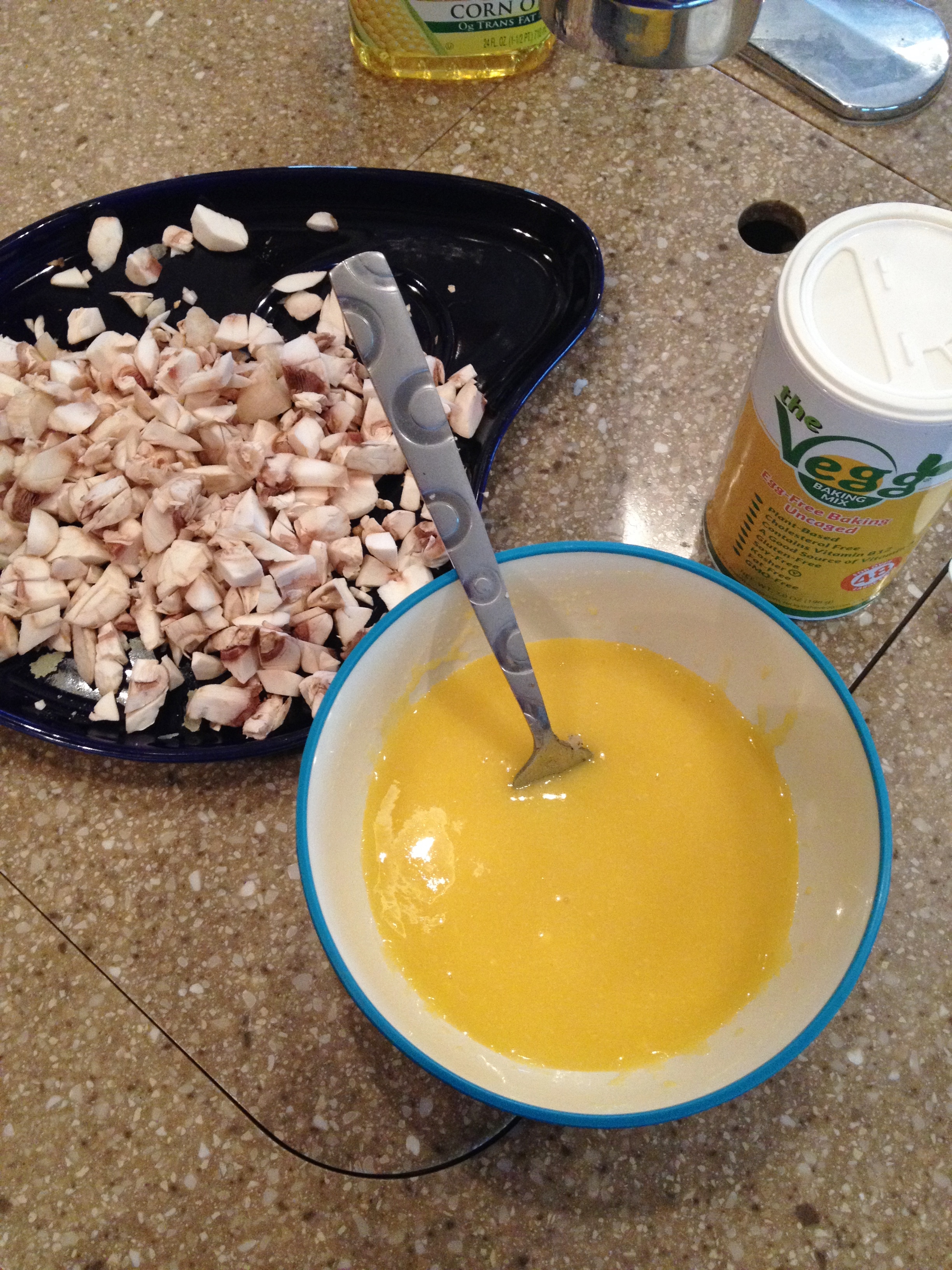 7. While potatoes are baking chop mushrooms and mix eggs.