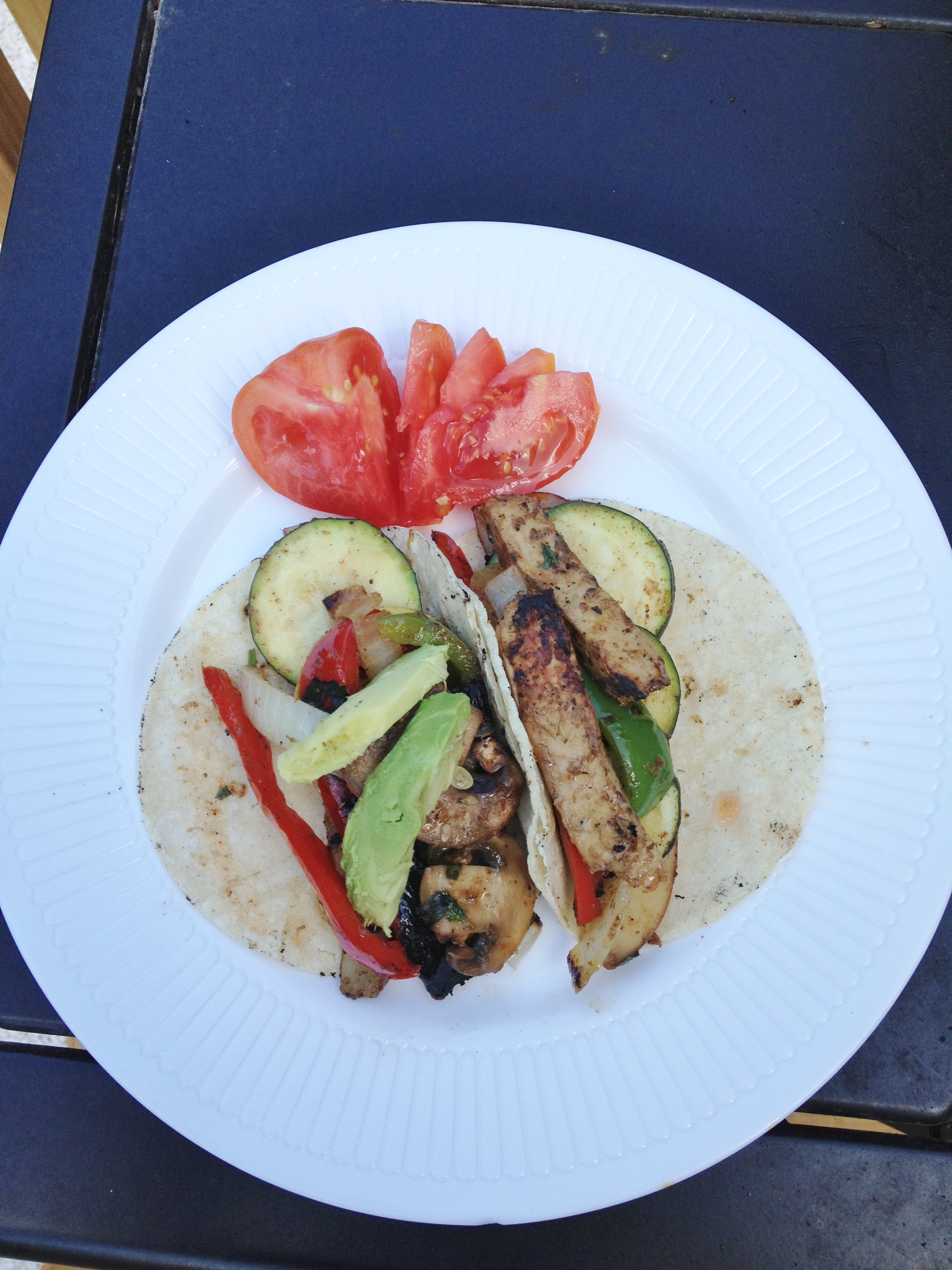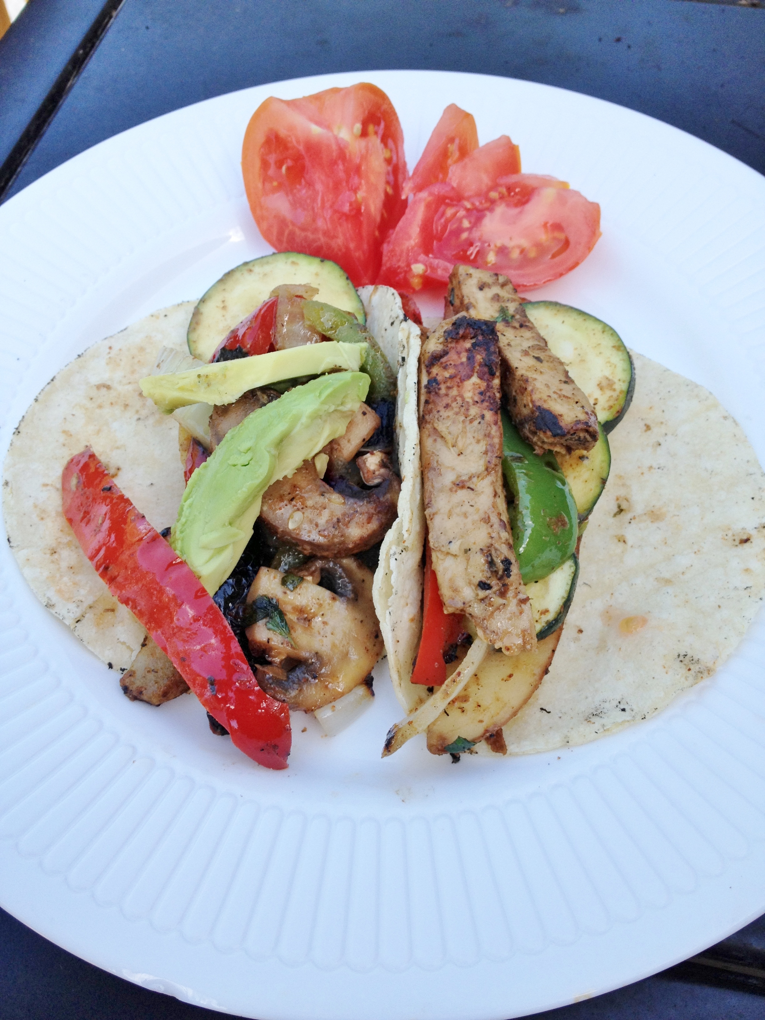 Well it is officially summer and that means the bar-b-que. But as a vegan or vegetarian I never really do anything on it, I mean my veg burgers can be heated in the microwave. Granted they taste better on the Que, but since I don’t own one I don’t use one. But hanging with my parents I get to use theirs. So I decided to break out of my rut of the oven and try my hand at grilling some veggies. And not just any veggies. A veggie-filled BBQ Fajita! Sounds awesome right?