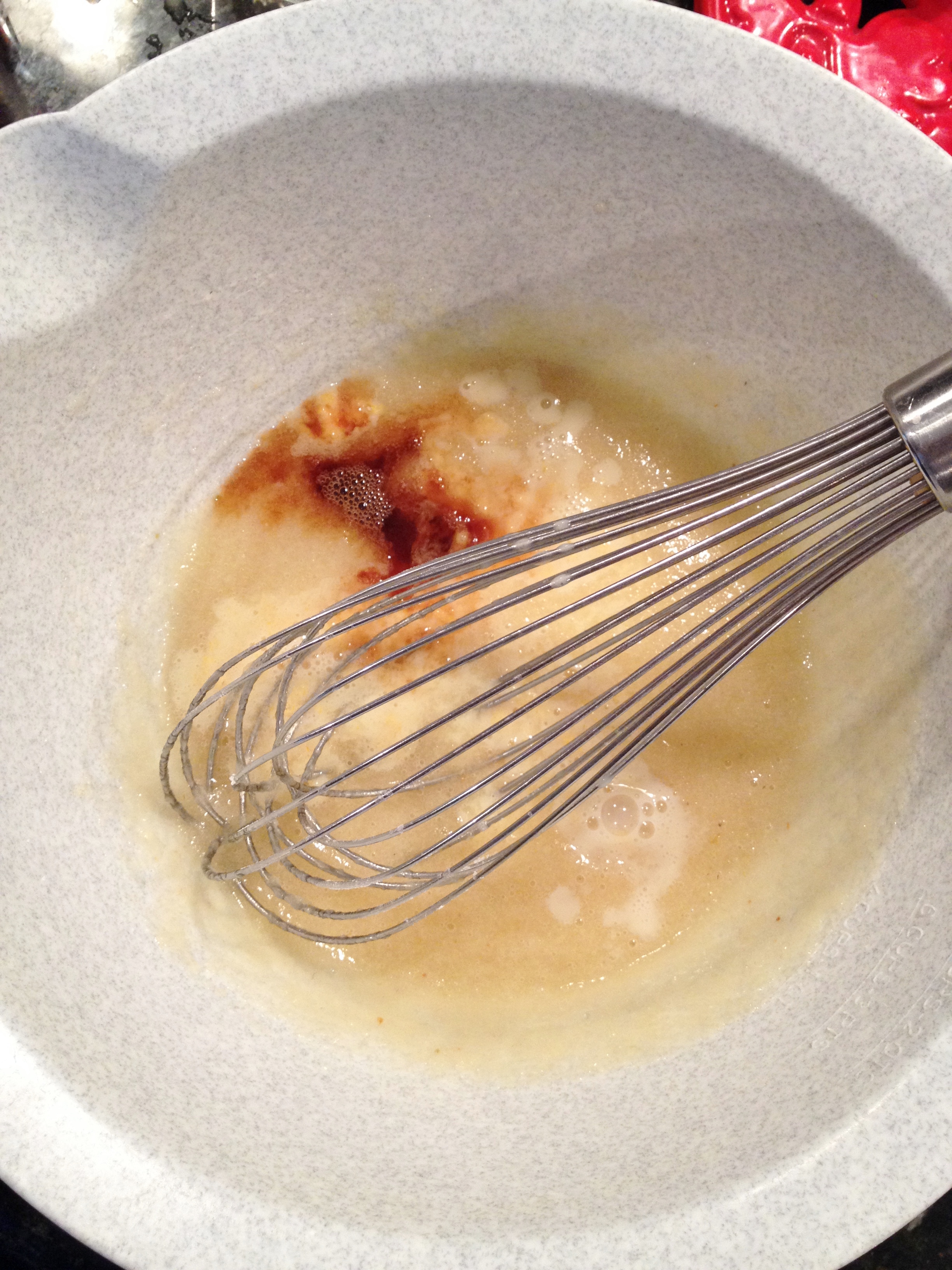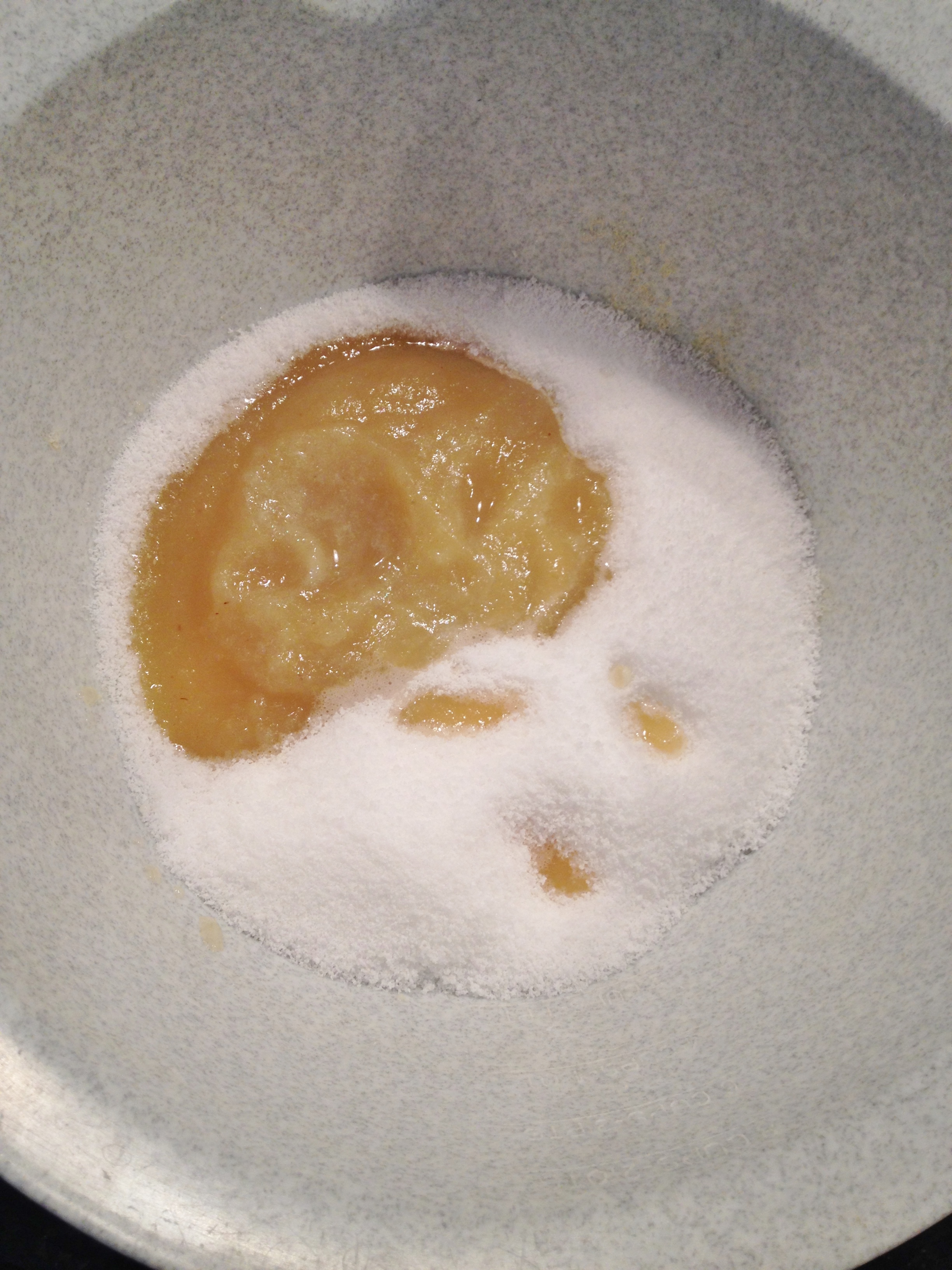 3. Mix Splenda and applesauce until combined then add Vegg, 1 tbsp soy milk, and vanilla and mix.