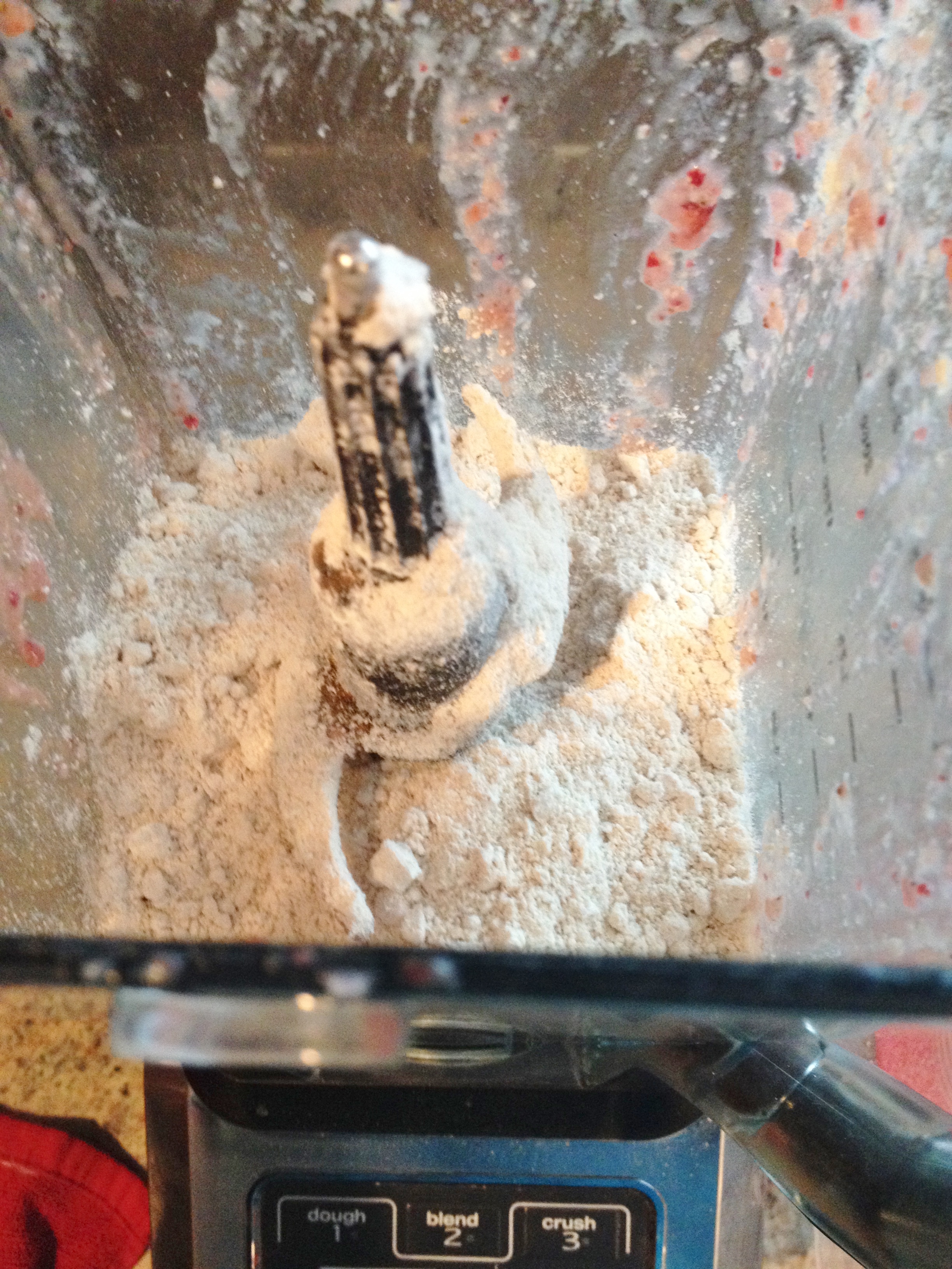 3. Pour in one cup flour and baking powder and soda. Blend then pour in other cup of flour. Blend until smooth.