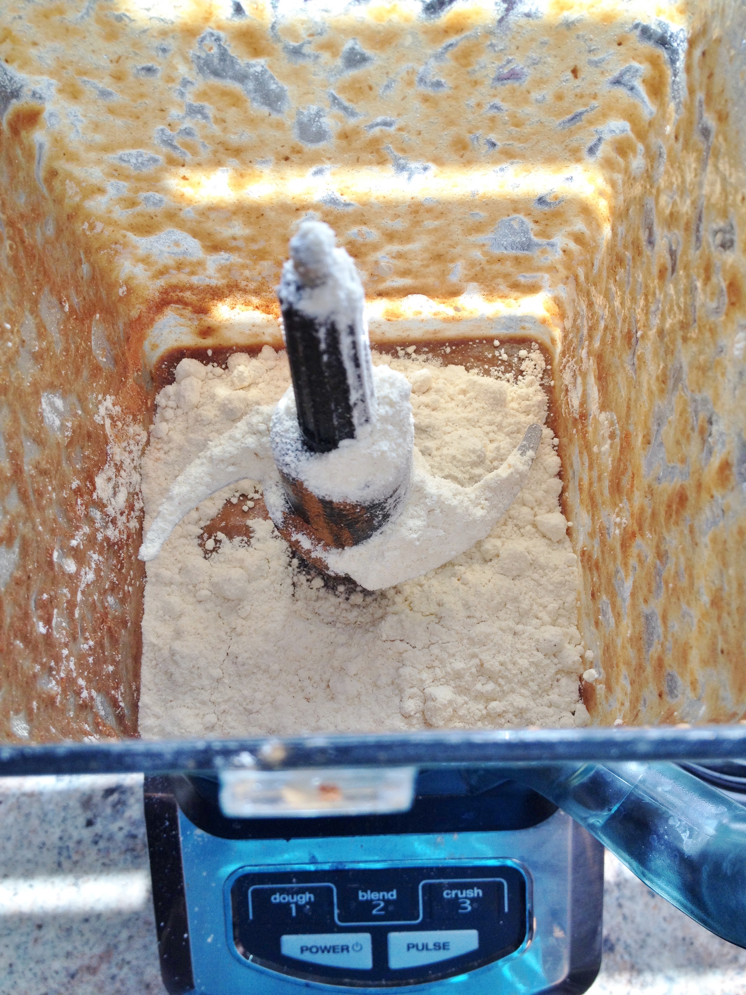 4. Add cinnamon and flour with baking powder and soda and blend until fully combined.