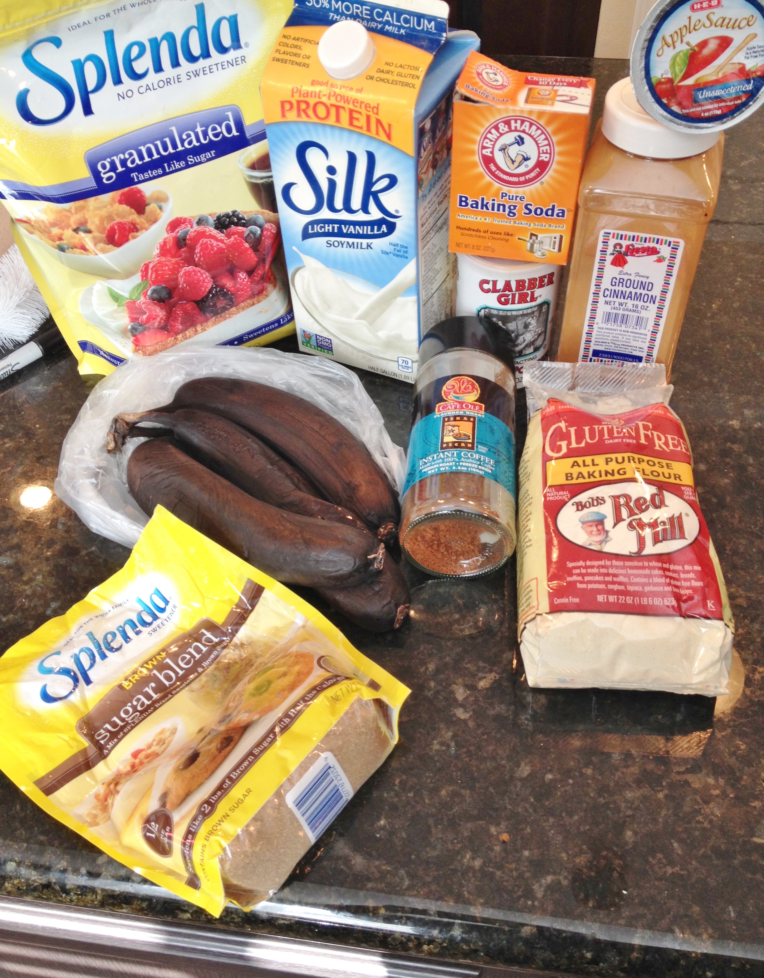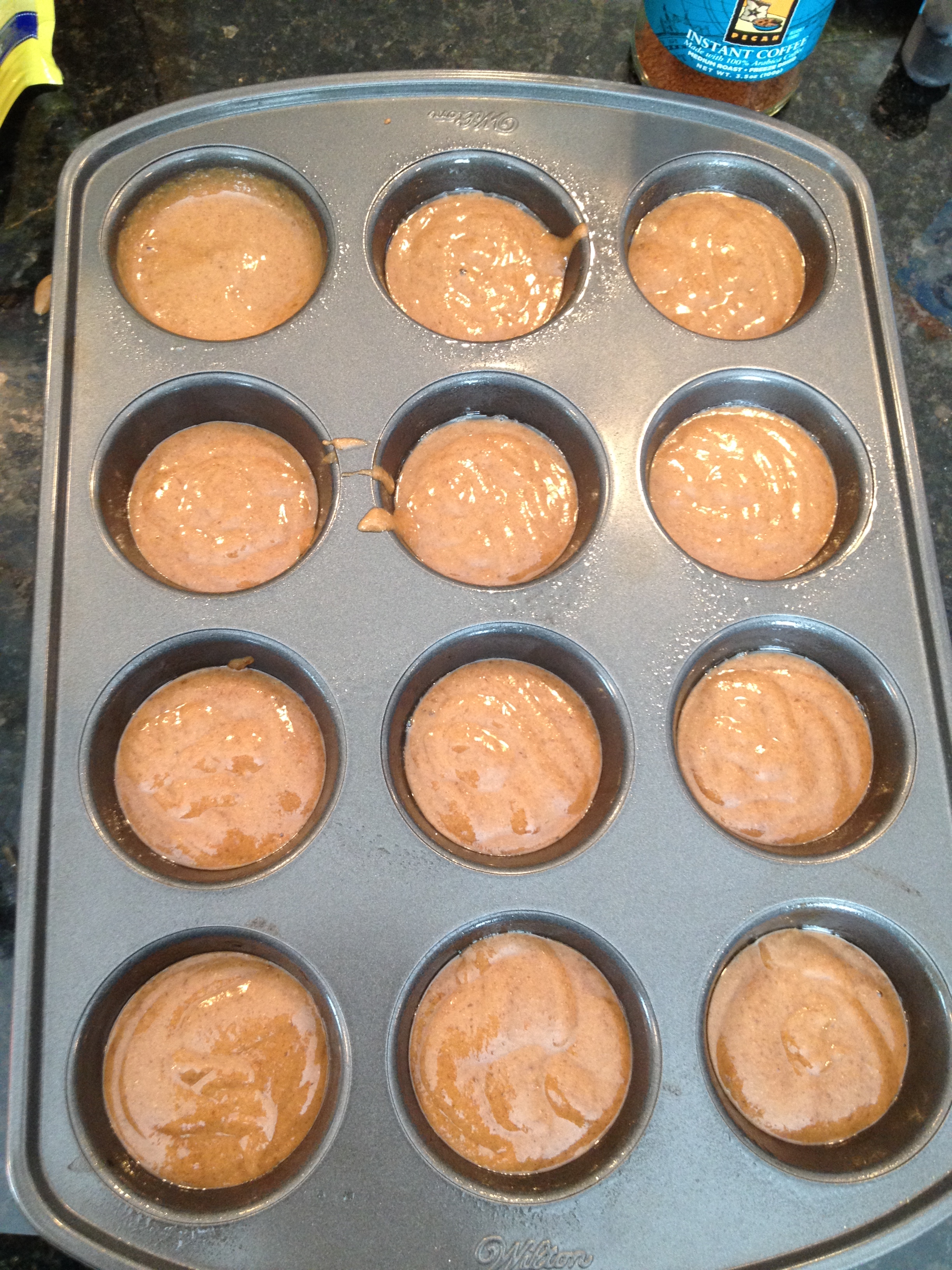 Vegan and Gluten-Free Banana Coffee MuffinsOne of my most favorite things in the world is banana bread. A yummy, banana-y, moist bread. One with lots of banana flavor. I love to buy bananas and let them go bad just so I can make more bread – not good for the waistline, but oh man so good! This time I decided to change it up and add coffee to the muffins. Coffee you say? Yep – instant pecan flavored coffee. I love this coffee, it is my morning at-work coffee. We have a Keurig (and I hate it) but I use it for the hot water and my instant goodness. So back to the banana bread – here is my vegan and gluten-free Banana Coffee Muffins.