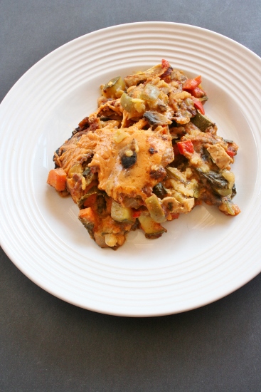 Vegan & GF Crockpot Enchilada LasagnaCrockpot cooking is the best thing to do during the summer.  Especially if you don’t have to do more than just make a quick sauce on the stove and cut up some veggies. And, no, this is not a soup. It’s a lasagna. And not just any lasagna, an enchilada lasagna that is full of good-time veggies and homemade sauce, a few tortillas and a little cheese. Yum. Here is my vegan and gluten-free Crockpot Enchilada Lasagna.