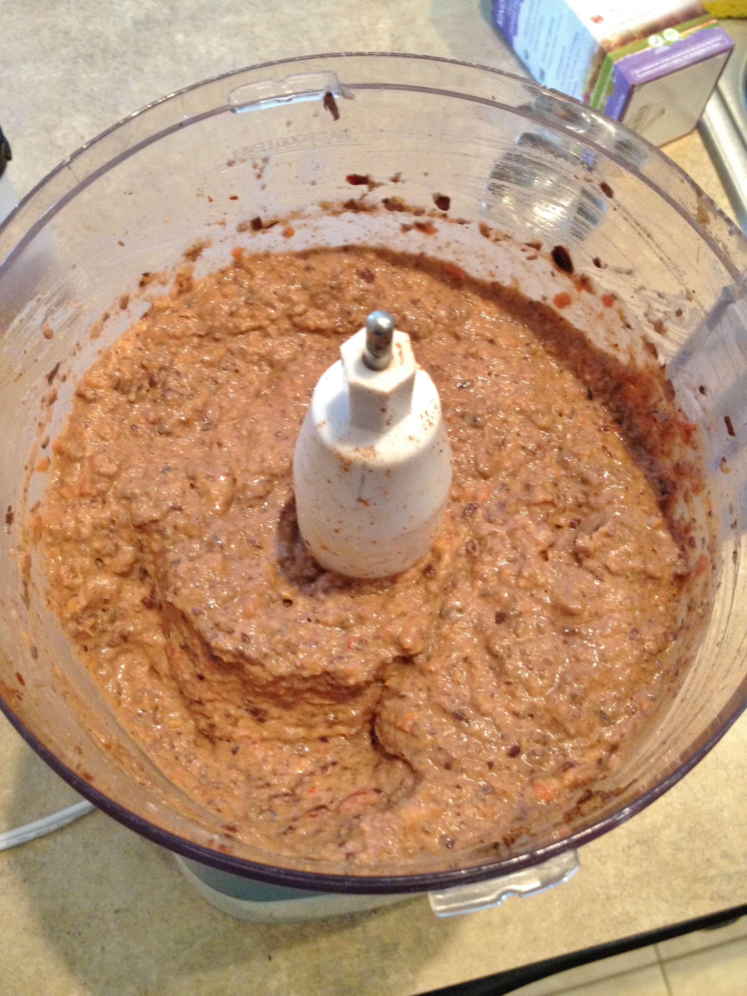 5. Turn on FP then pour in oil and process until smooth, scraping sides if needed.