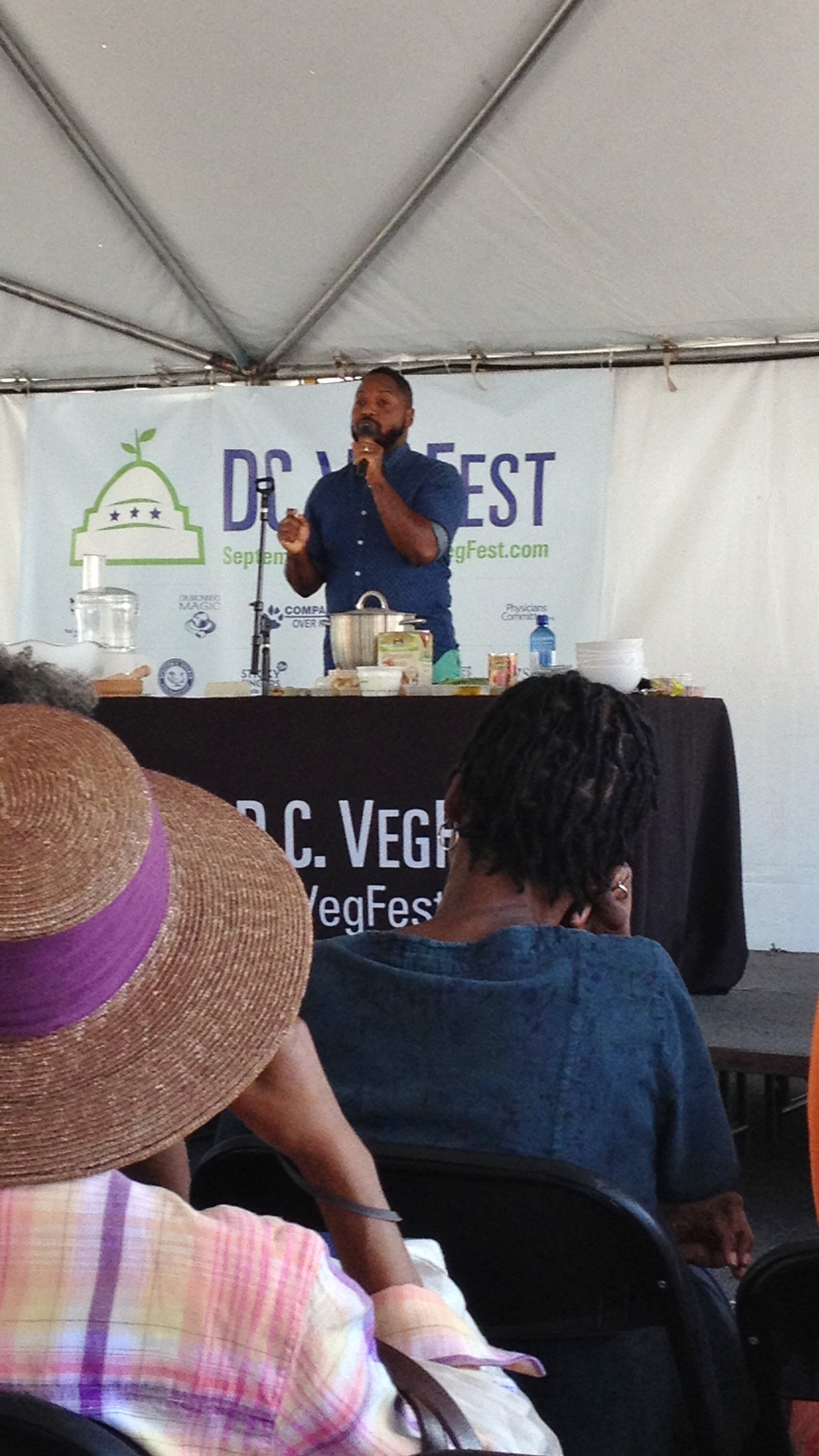 As for the speakers, I was awed in that I have never seen a famous person in person. Robin Quivers from the Howard Stern show was there and talked about her health challenges and how she used food (a vegetarian lifestyle) to help her recover from everything she had gone through. They also had Bryant Terry, the cookbook author who just wrote the Afro-Vegan. He was a very engaging speaker and even did a cooking segment and signed cookbooks. Very cool. And the last one who spoke and did a cooking demo was October Runner’s World cover