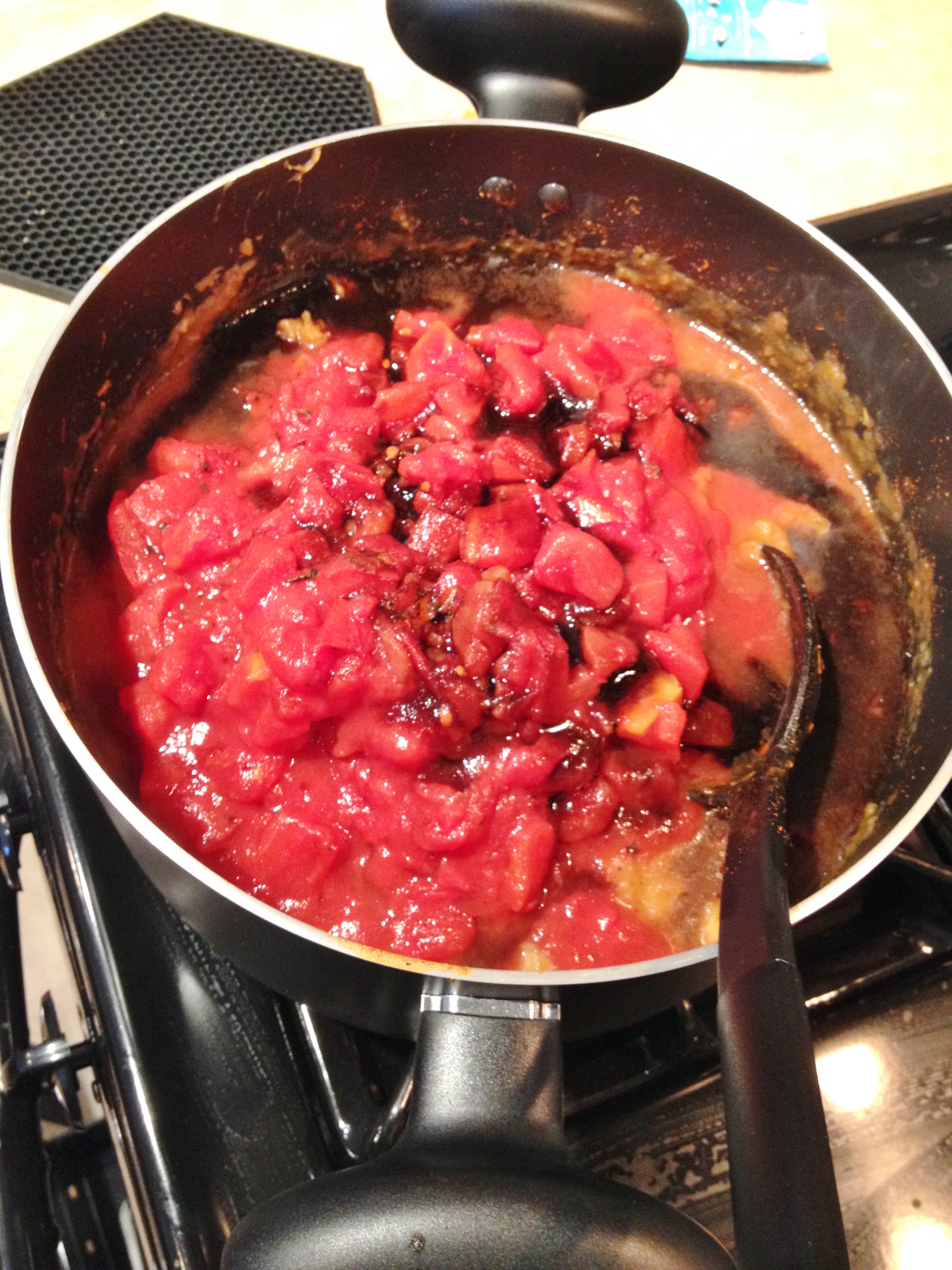 4. Add vinegar and diced tomatoes and mix.