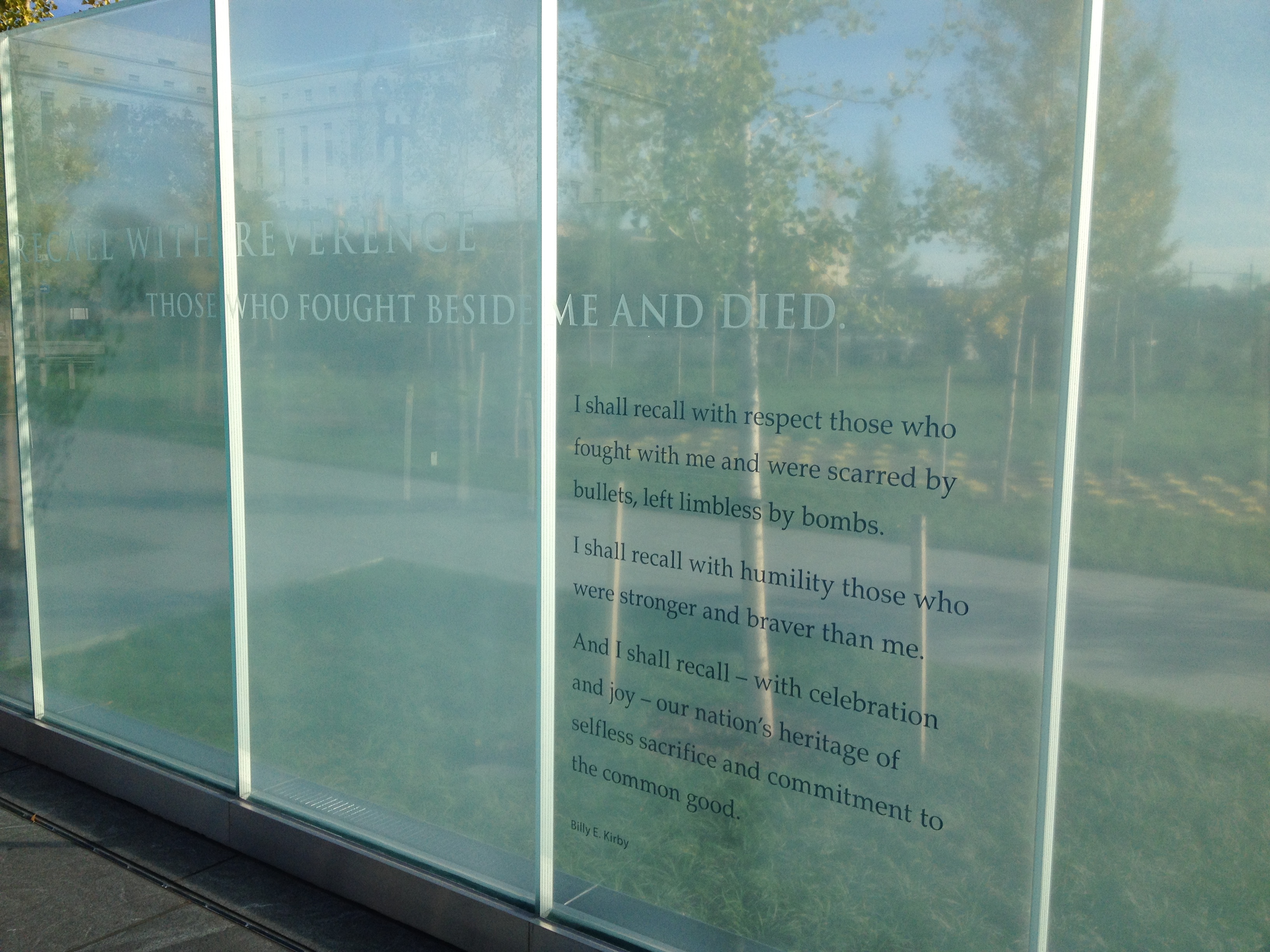 Disabled Vets MemorialBut the one memorial I have been wanting to visit since I heard it was opening was the American Veterans Disabled for Life Memorial. The memorial is brand spanking new to DC, it just opened a few weeks ago, the same weekend as my 5k. I had jogged over to it after the 5k, it’s by the Capitol, but the President was there for the dedication so it wasn’t open to the public. Duh me for not checking. But I finally got there, and let me say, it is just as daunting as any of the other war memorials – but this one is even more so since this is memorial that I can relate to. It is created in the era of 09/2011 and the continuing wars and it’s casualties. I also like to think that this memorial is not just for the physically disabled but the emotionally disabled vets also. I think we have all had people in our lives that have been affected mentally and emotionally by what they experienced in the wars they fought in. A memorial that is dedicated to all veterans who have a disability due to the horrors they lived through, that they had to witness watch others go through. This one is definitely a must-see.