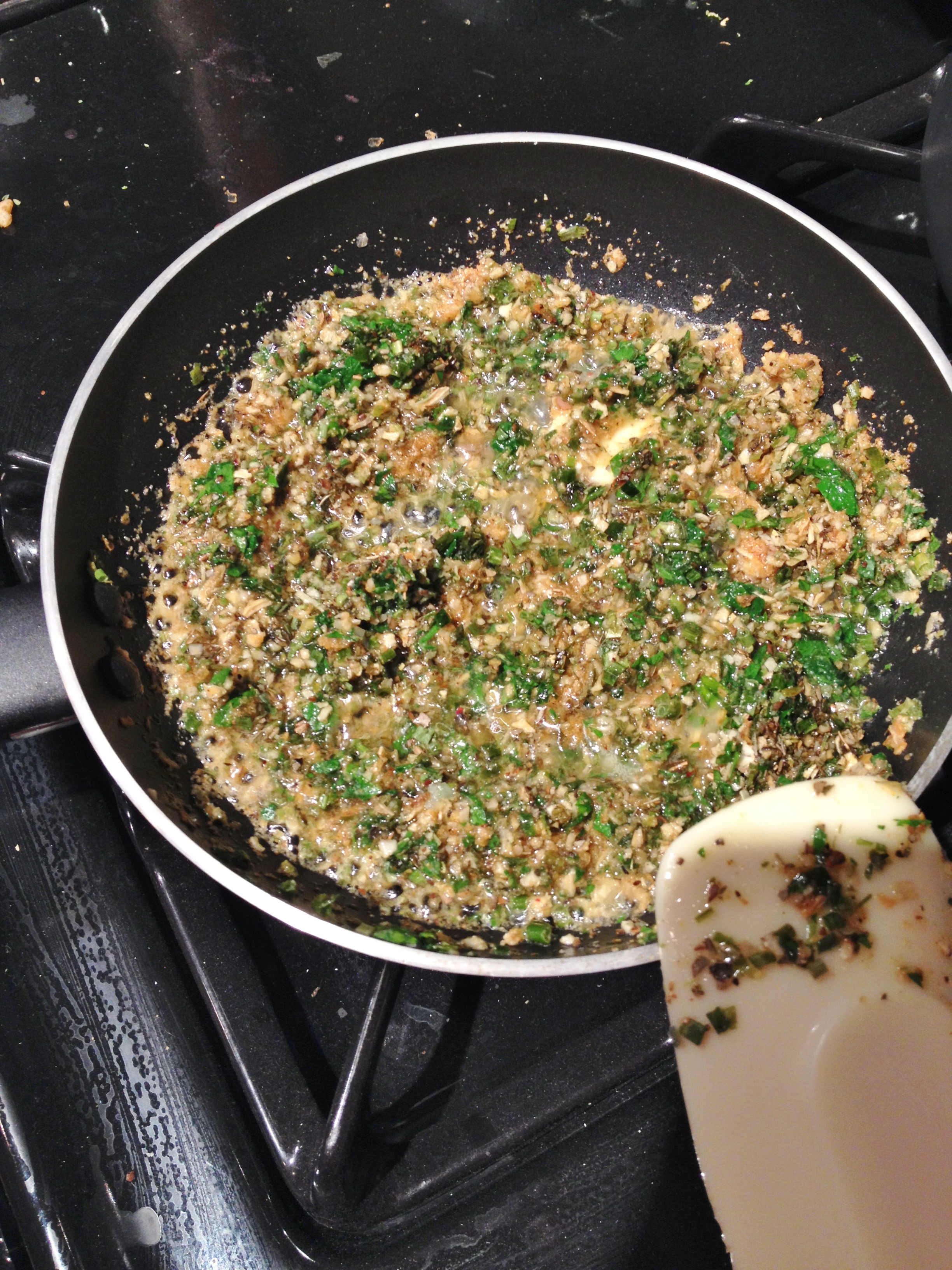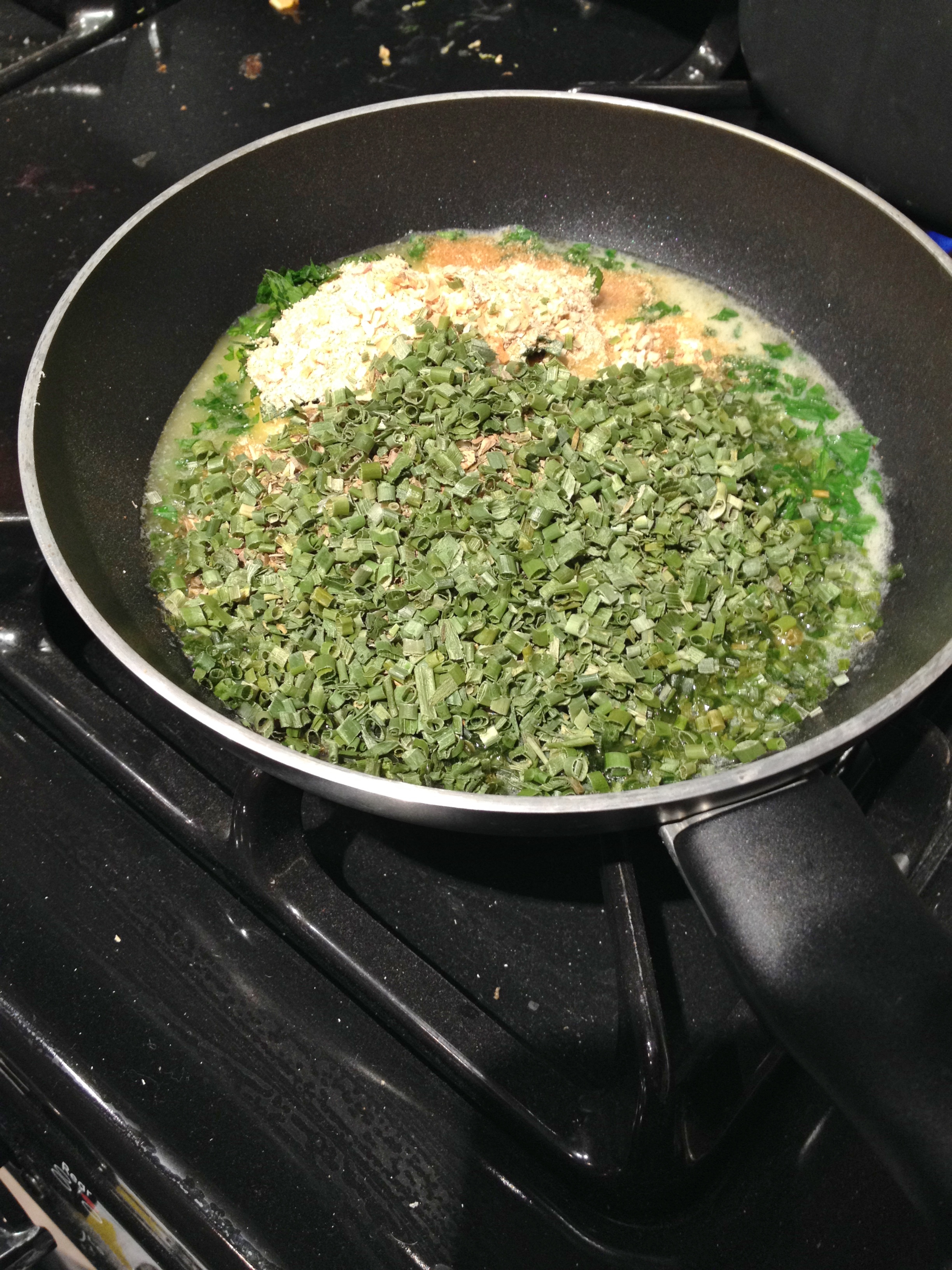 4. In a small pan melt butter then add all herbs. Keep heat to a medium-low to heat through herbs.