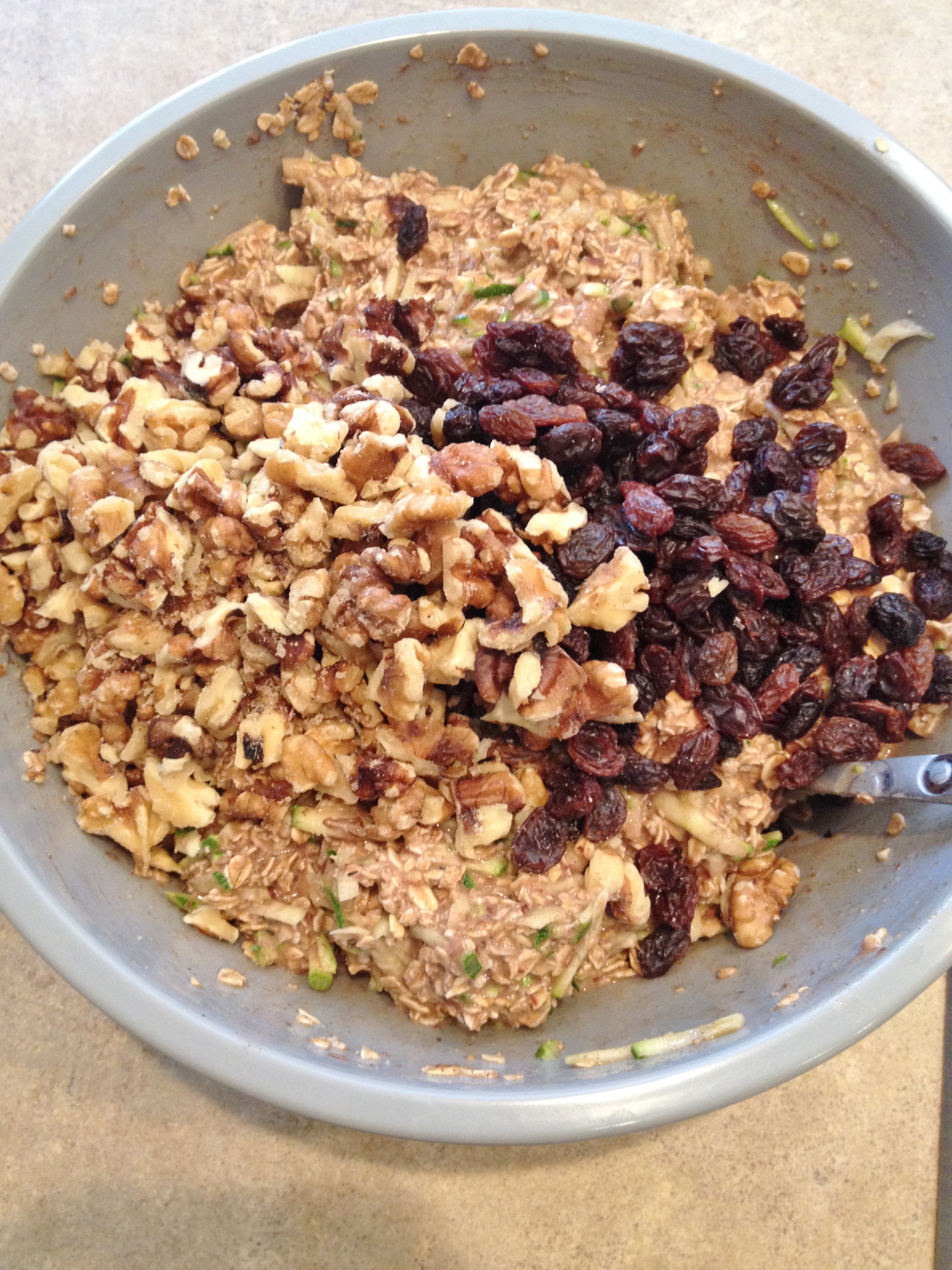 6. Chop walnuts then add along with raisins to mixture.