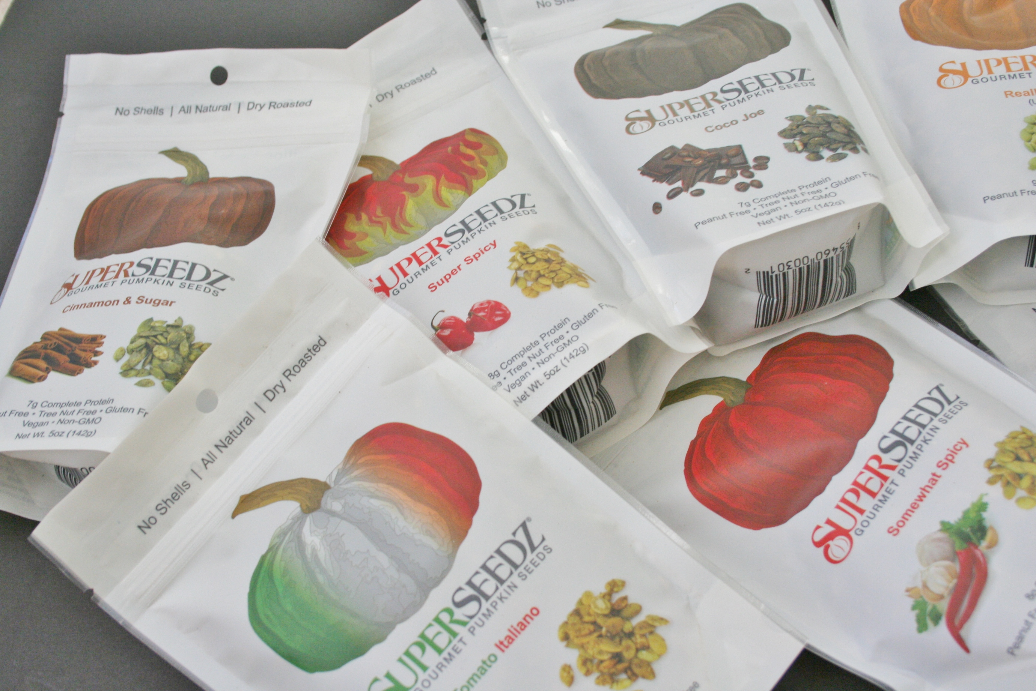 One of my favorite snacking foods is nuts – it really doesn’t matter the kind, I can snack on almost any kind. But I have come to love seeds – pumpkin seeds to be exact. I had never had them until a couple of years ago, but after that I would buy them in bulk and chow down, and they have easily become my favorite nut / seed. Don’t get me wrong, I love a good ole cashew or peanut like the next person, but there is just something extra yummy about the little green seed. And since they were never easily accessible and come in a can or container like other nuts, it was always a special snack since I only could get them from one stores bulk bin. But not now! These SuperSeedz are in your grocery store and online for easy access!