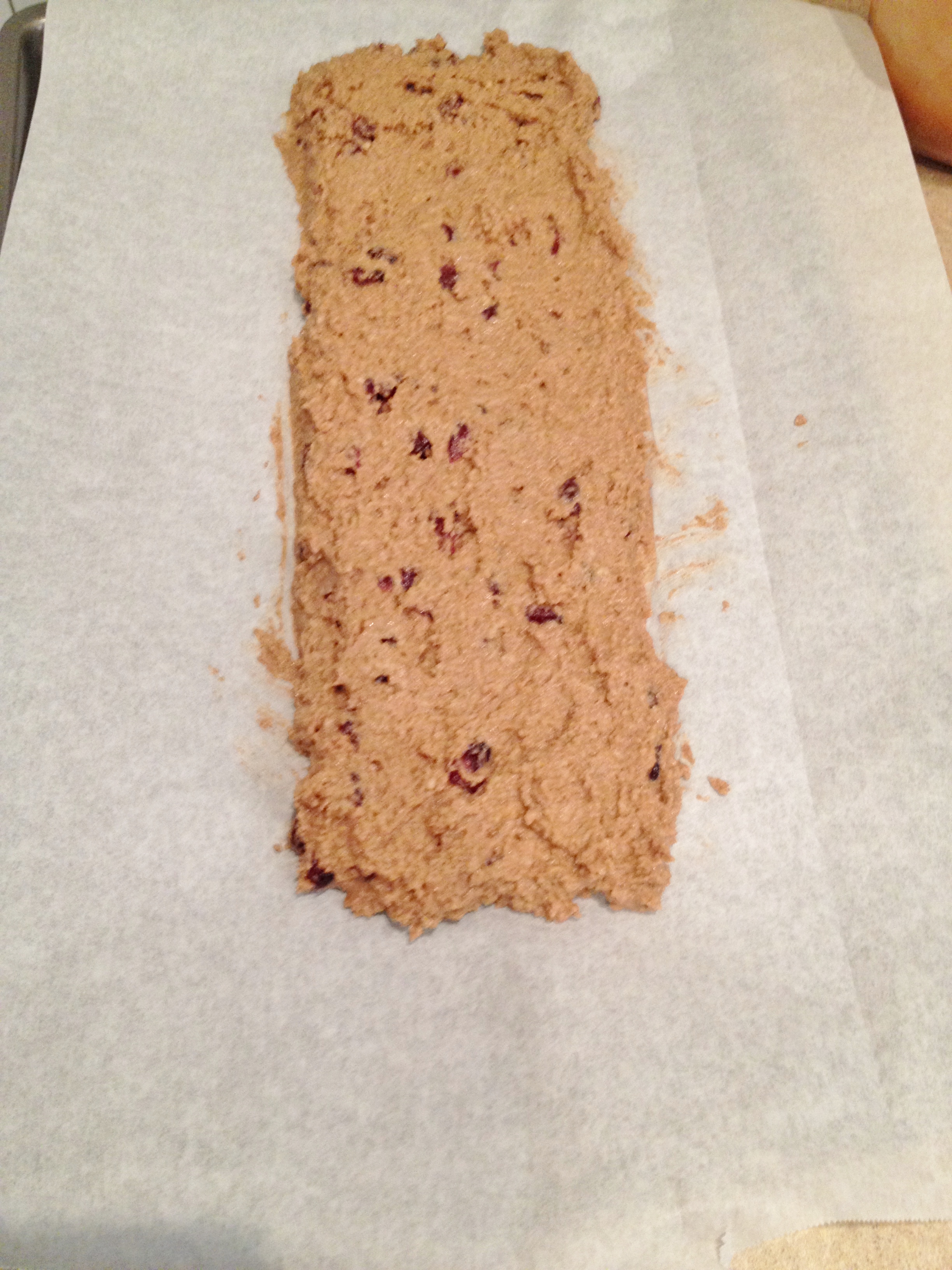 4. Pour batter on the baking sheet and shape into a long rectangle / log.