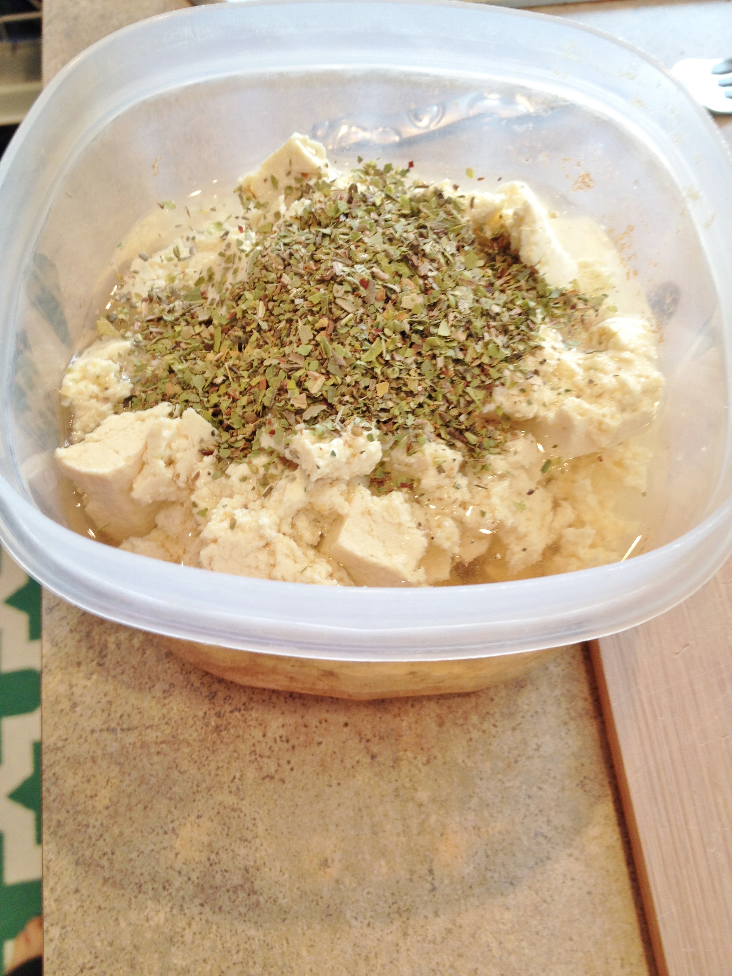 1. Make tofeta from recipe link. I let mine marinade overnight.