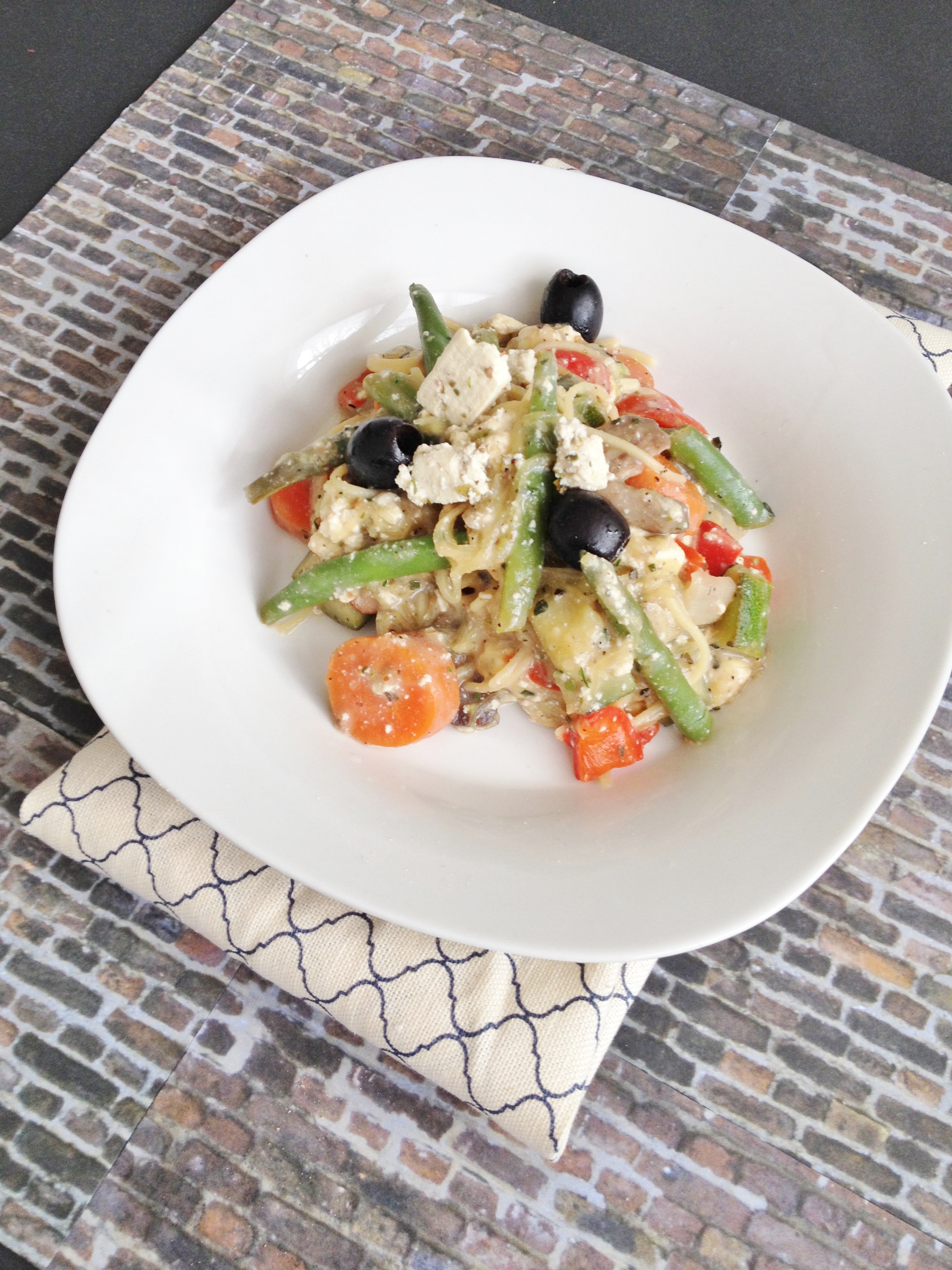 Greek food? Now that is one country I haven’t really touched on yet. I don’t eat Greek food, ever, so I don’t think about spices or foods that are necessarily from Greece. Now I have always wanted to go to Greece, but I haven’t made it there yet so maybe subconsciously I have just not wanted to make any Greek foods? Probably not the case since I have never been to anywhere in Asia and I have no problem trying out recipes from that part of the world. Oh well, here is my take on vegan and gluten-free Greek Spaghetti.