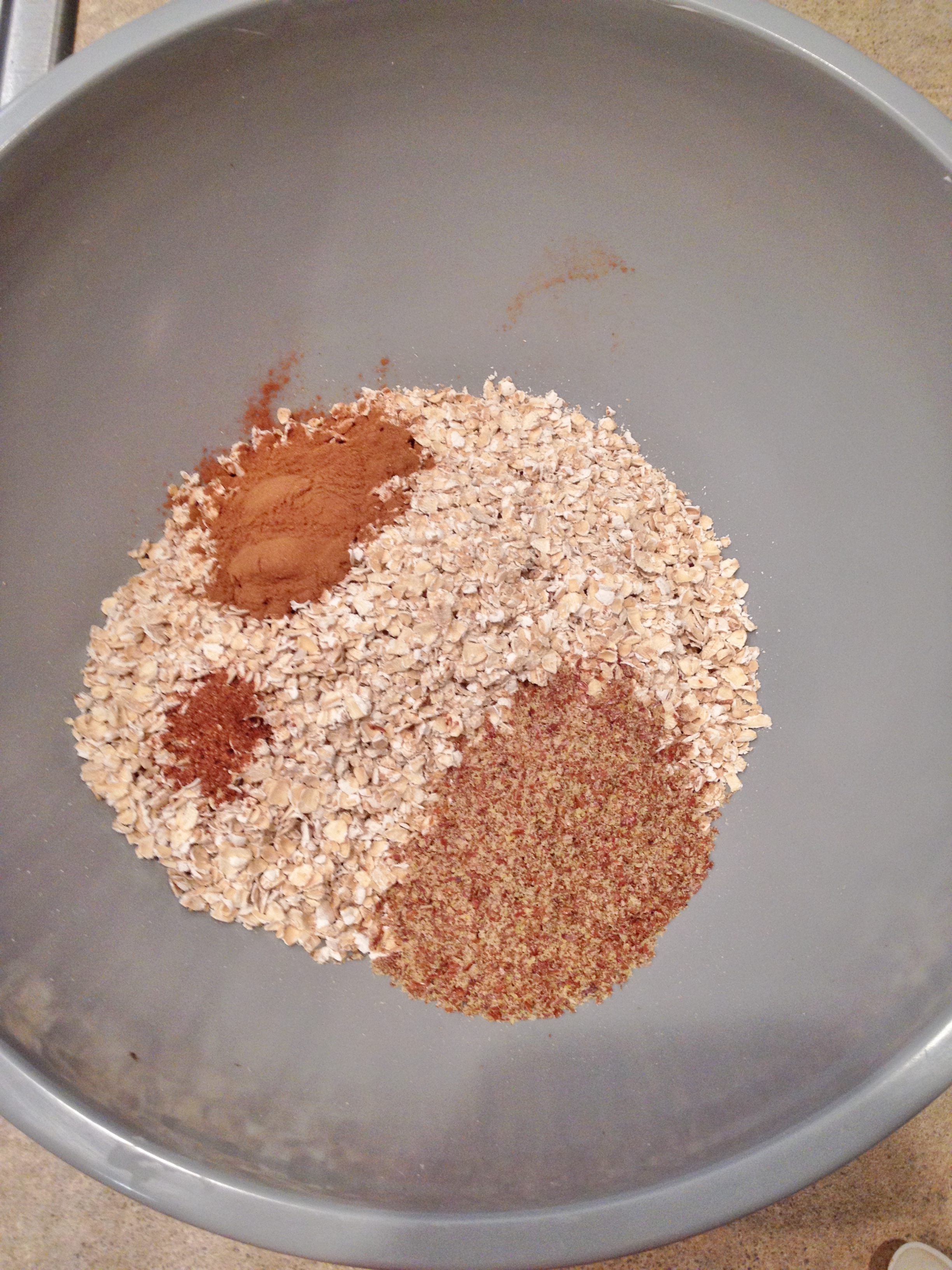 2. Mix oats, spices, and flax in a medium-size bowl.