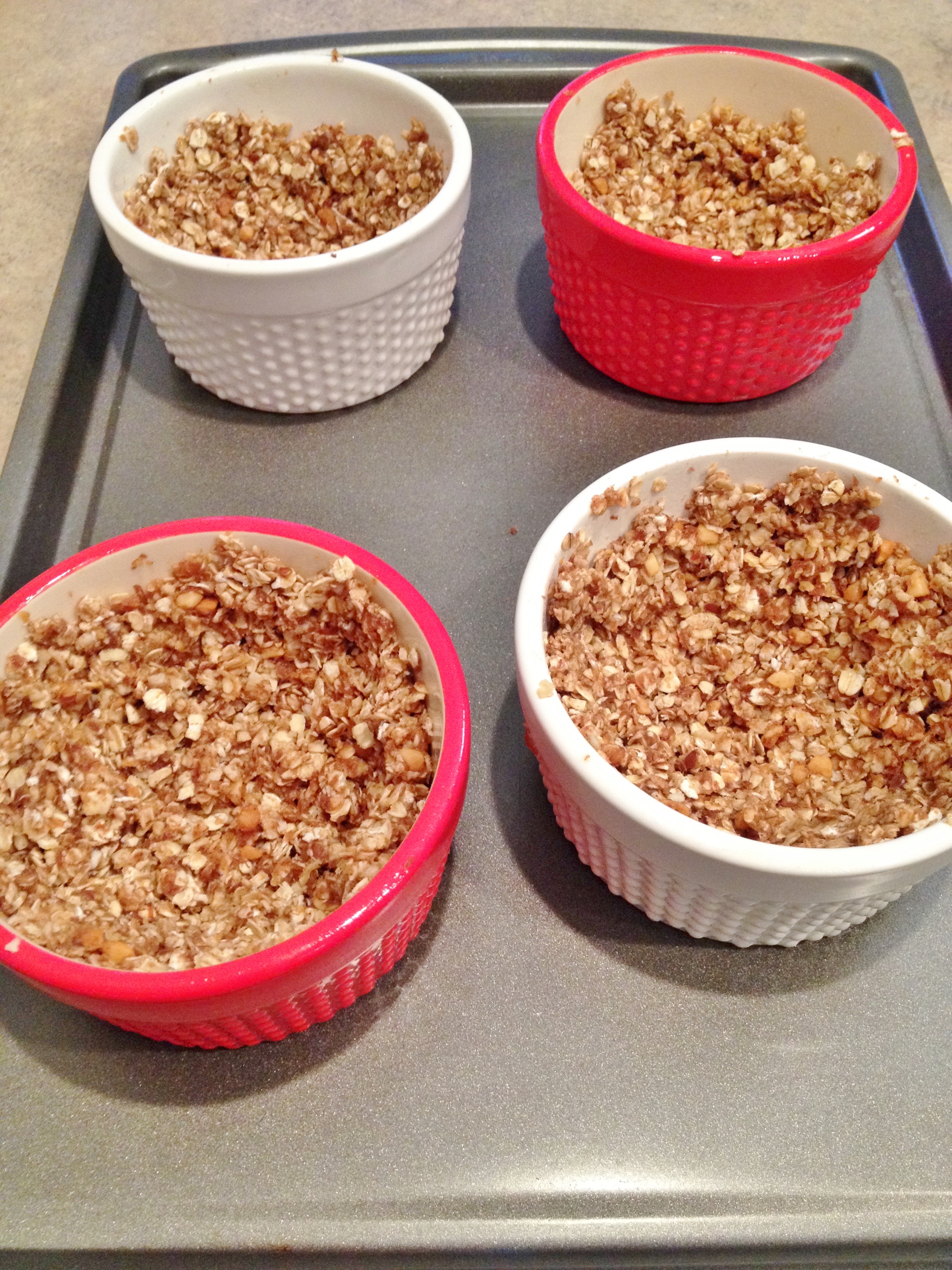 6. Put ramekins on small baking sheet and bake 20 minutes.