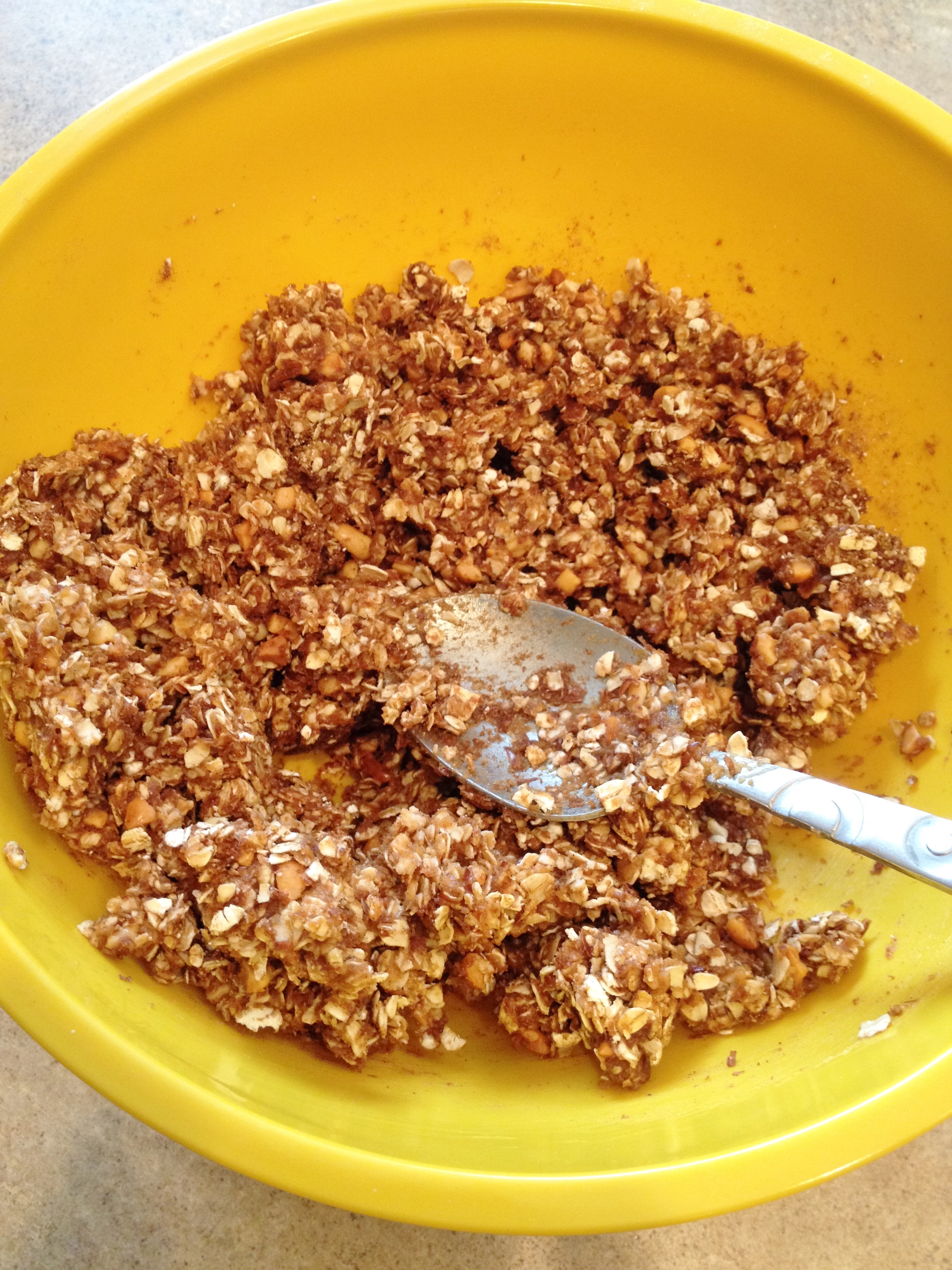 4. Mix in the cup then dump into oat mixture and mix until well combined.