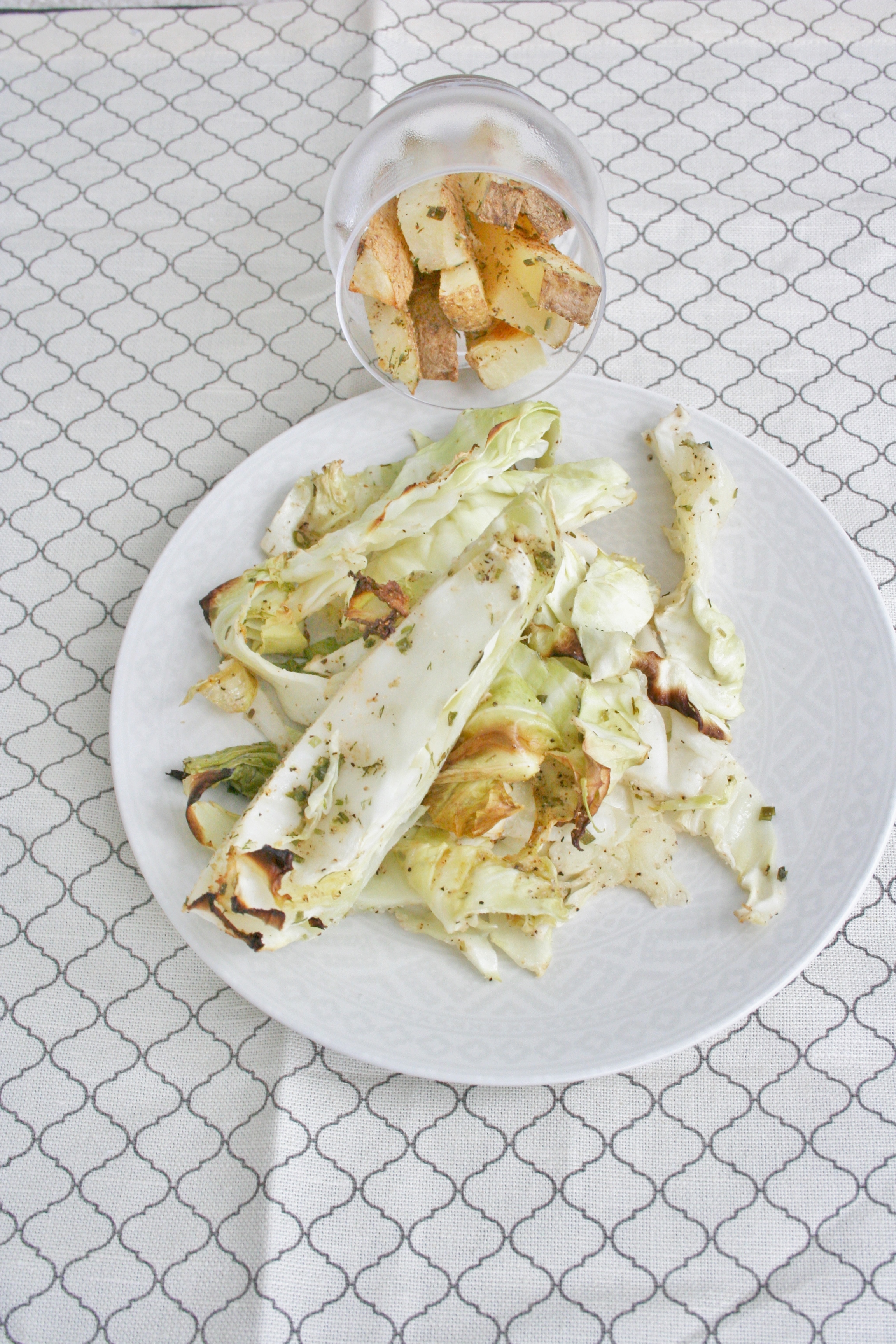 I don’t know about you but my favorite way to make and eat cabbage is to roast it. Boiling, the only other way I know how to make it, just makes it too gummy tasting to me. And after roasting it, the cabbage always gets sweeter tasting and holds the spices really well. And this is the first time I have gotten my potatoes to hold up like a fry! Normally my potatoes are cut into chunks so they are more like hash or don’t cook all the way through so they are kinda gooey, but these babies were crispy and firm. Gosh who doesn’t love a good fry! The spices may seem like a ton but they do not over-power the veggies at all, and actually the black pepper came through and made it all just a tiny bit spicy. Yum!
