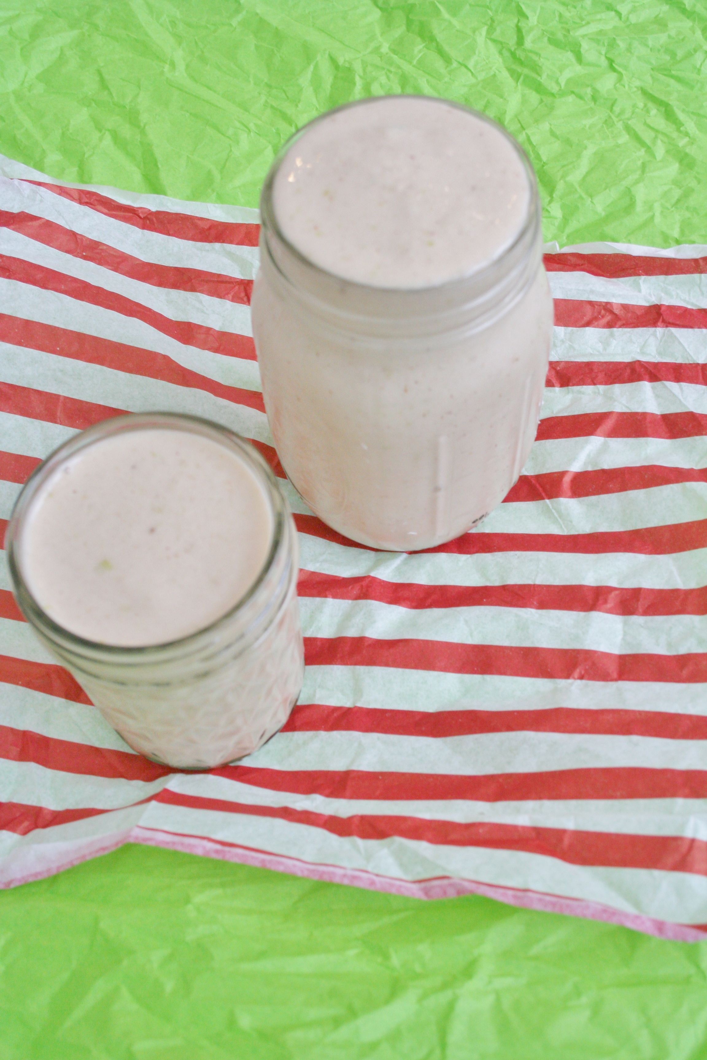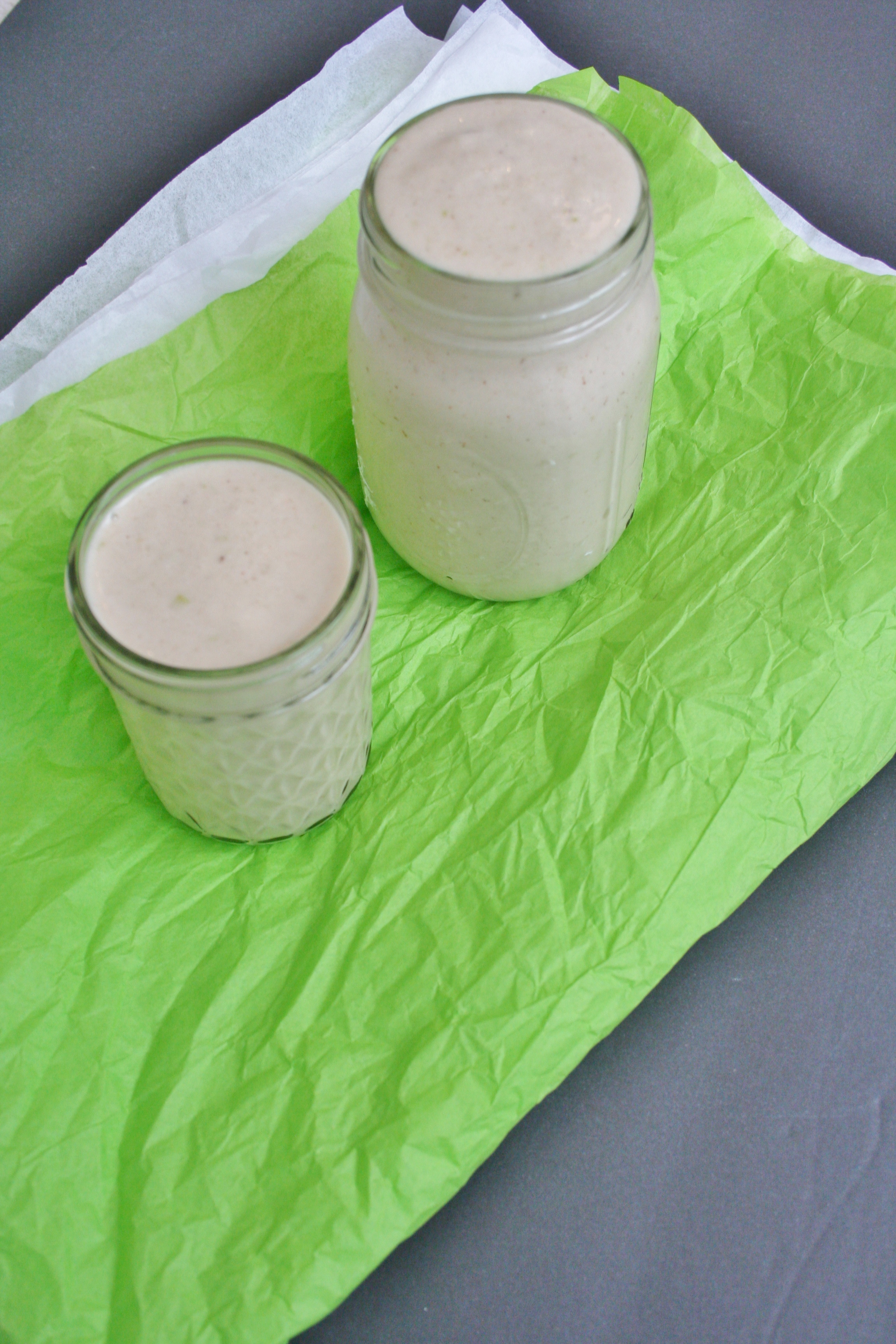 I decided to use the cherry vanilla NuNaturals sweetener and vanilla almond milk to help up the vanilla flavor. I don’t know about you, but I can never – as hard as I try – get anything to taste like total vanilla. But with the vanilla protein powder it all came together perfectly and was just what I wanted after my sweat session! Toss your two frozen bananas, cored pear, one full dropper of sweetener, one cup milk and your protein packet into the blender and let whir away. Once done pour in a big cup and enjoy! This was the first time I have ever smoothie-uped a pear, but oh yum! And the SunWarrior protein powder wasn’t too bad either.