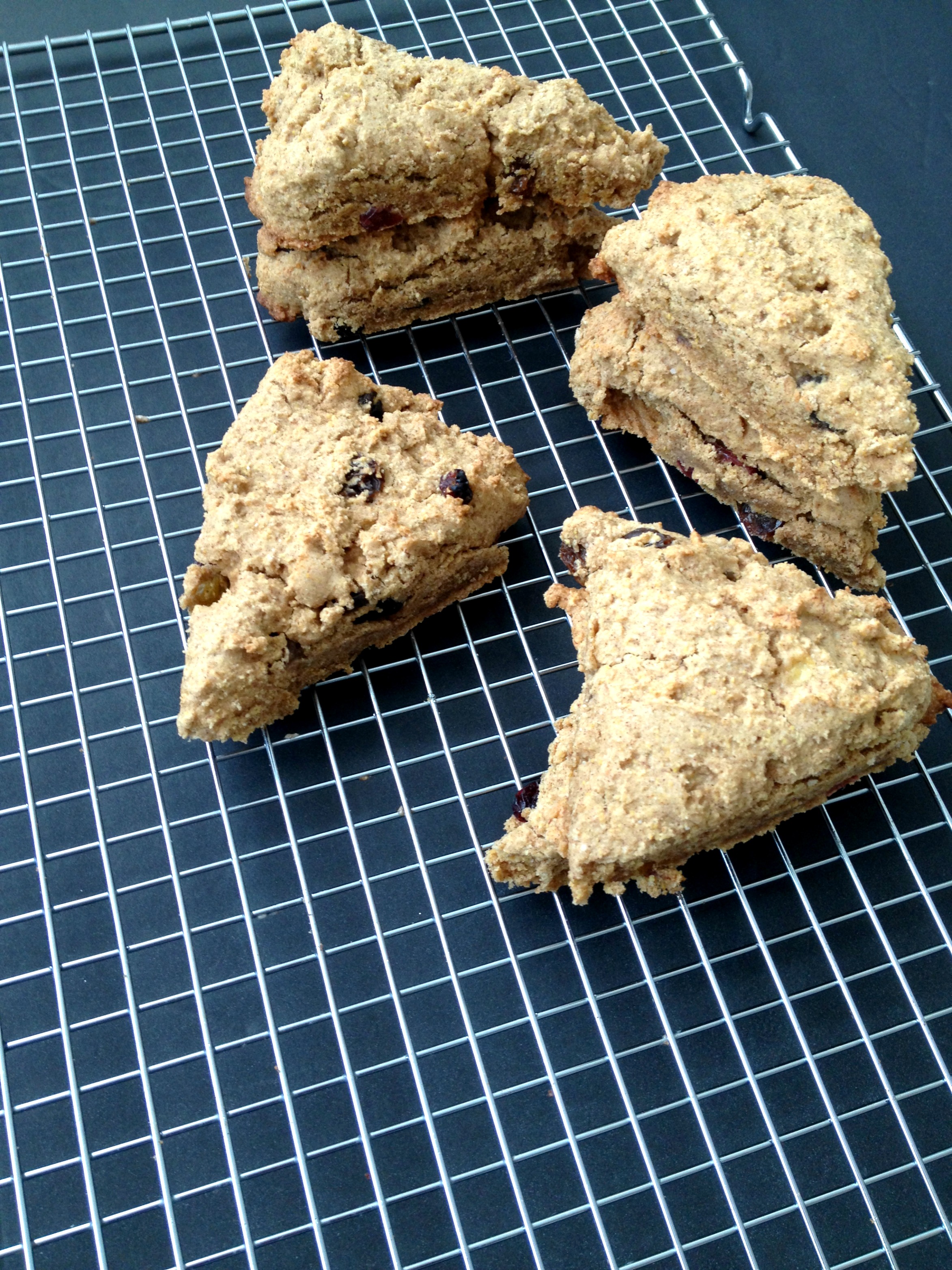 I love cooking shows and get tons of inspiration from them. I type out recipes and substitutions in my notes app on my phone and for this recipe I combined a couple recipes from different shows. I watched a corn muffin recipe and the Barefoot Contessa said not to over mix the batter because that is how you get crumbly muffins. They say that with every baking recipe but I decided to try that with this one, to try and get the perfect corn muffin. But I wanted something a little different so decided to add cinnamon and cardamom, kind of a chai-esque corn muffin, but also make it a scone. Eek! With all the baking fails and close=calls baking fails around here why try to make something too difficult? Well, why not I say!