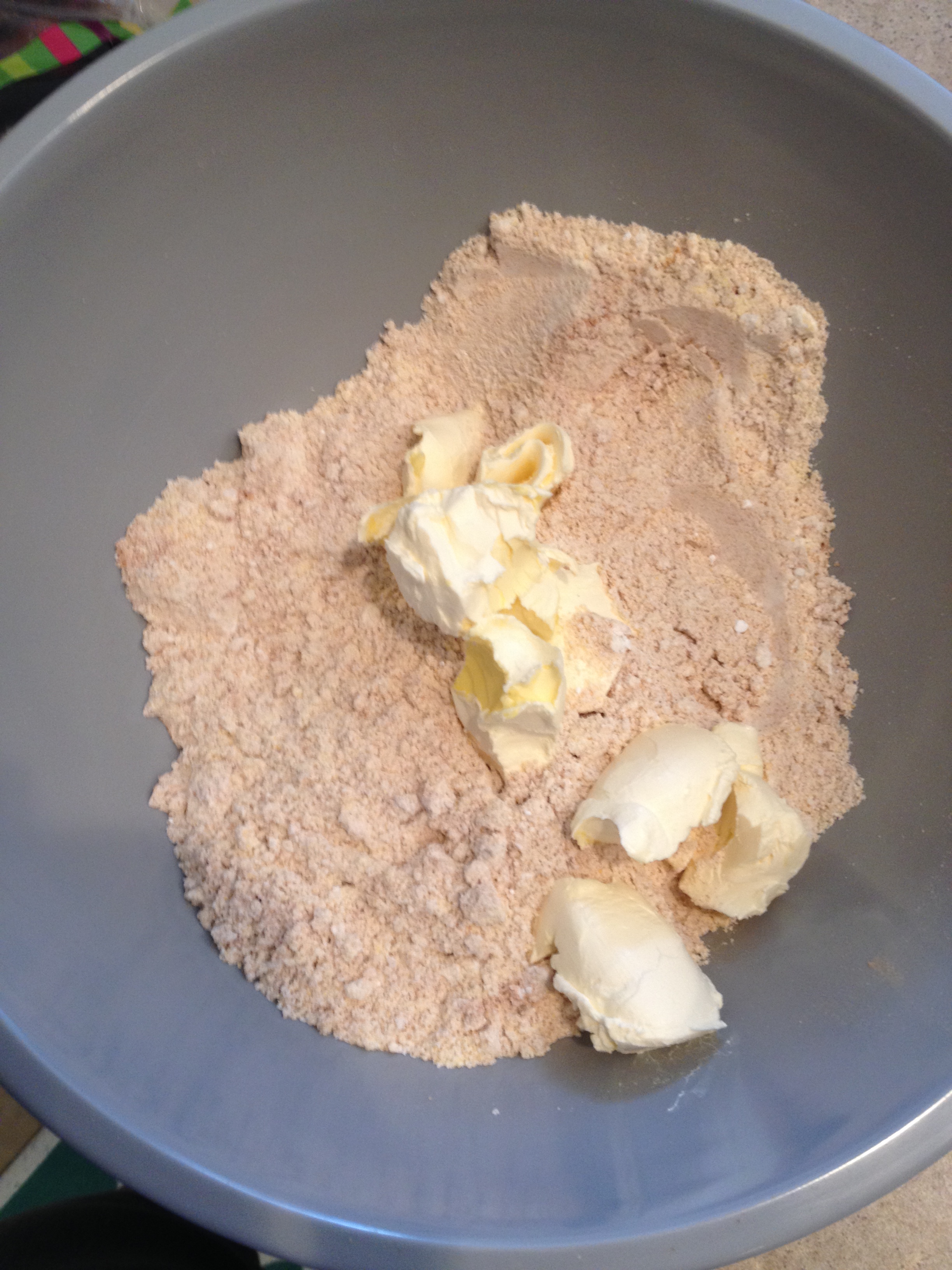 3. Add butter and using clean hands, squish into the dry ingredients.