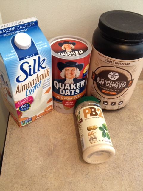 My new work schedule has me working normal-people hours – you know, 8am-4:30. I was working 6:30-3pm and working out after I got home, but now with the later morning start I am able to get an hour+ workout in, which is great. However, when I get to work I am super-tired and my muscles are jumping. I’m thinking this means I need to replenish my nutrients, and not just with coffee! So in comes the overnight oats, which obviously is super-easy because. Hello, it’s just dumping everything in a plastic container and popping in the fridge overnight. But I added some raw chocolate protein powder this time … and I went and bought a new peanut powder to try. The PB2, which OMG kind of expensive but the flavor! This is the most decedent oatmeal I have ever tasted!
