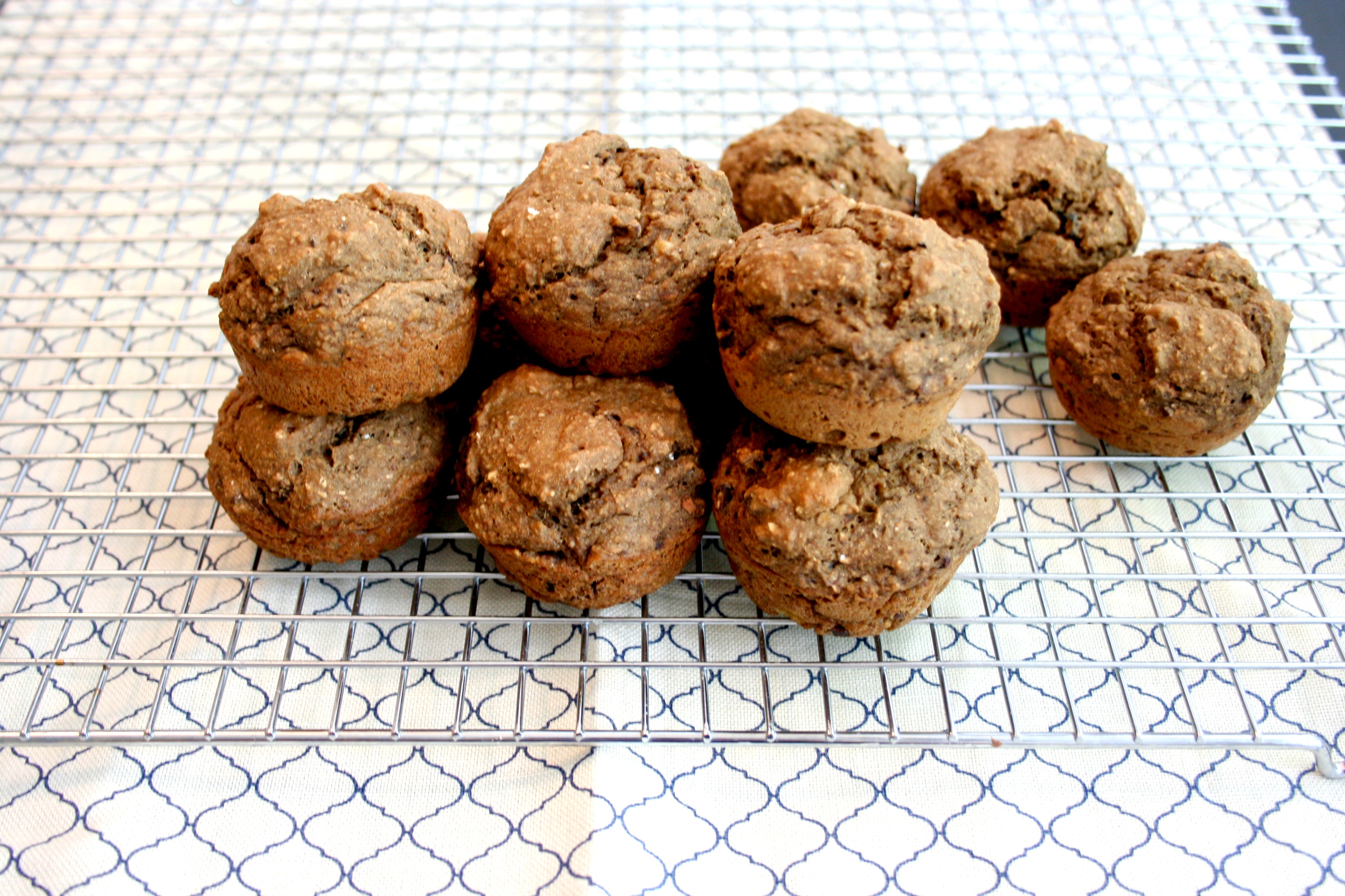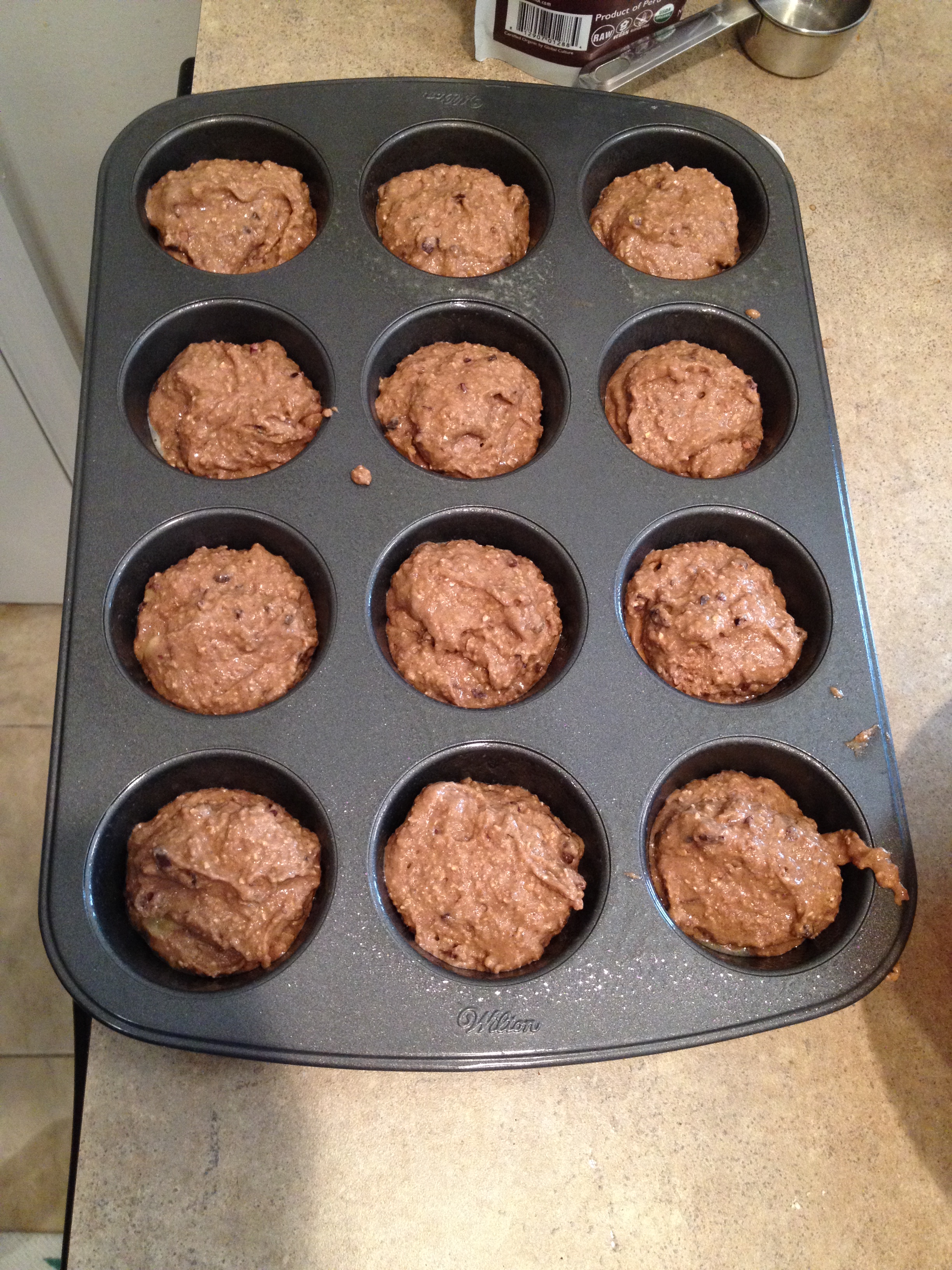 Banana Chocolate Peanut Butter Muffins, 12 regular size muffins and 11 mini-muffins